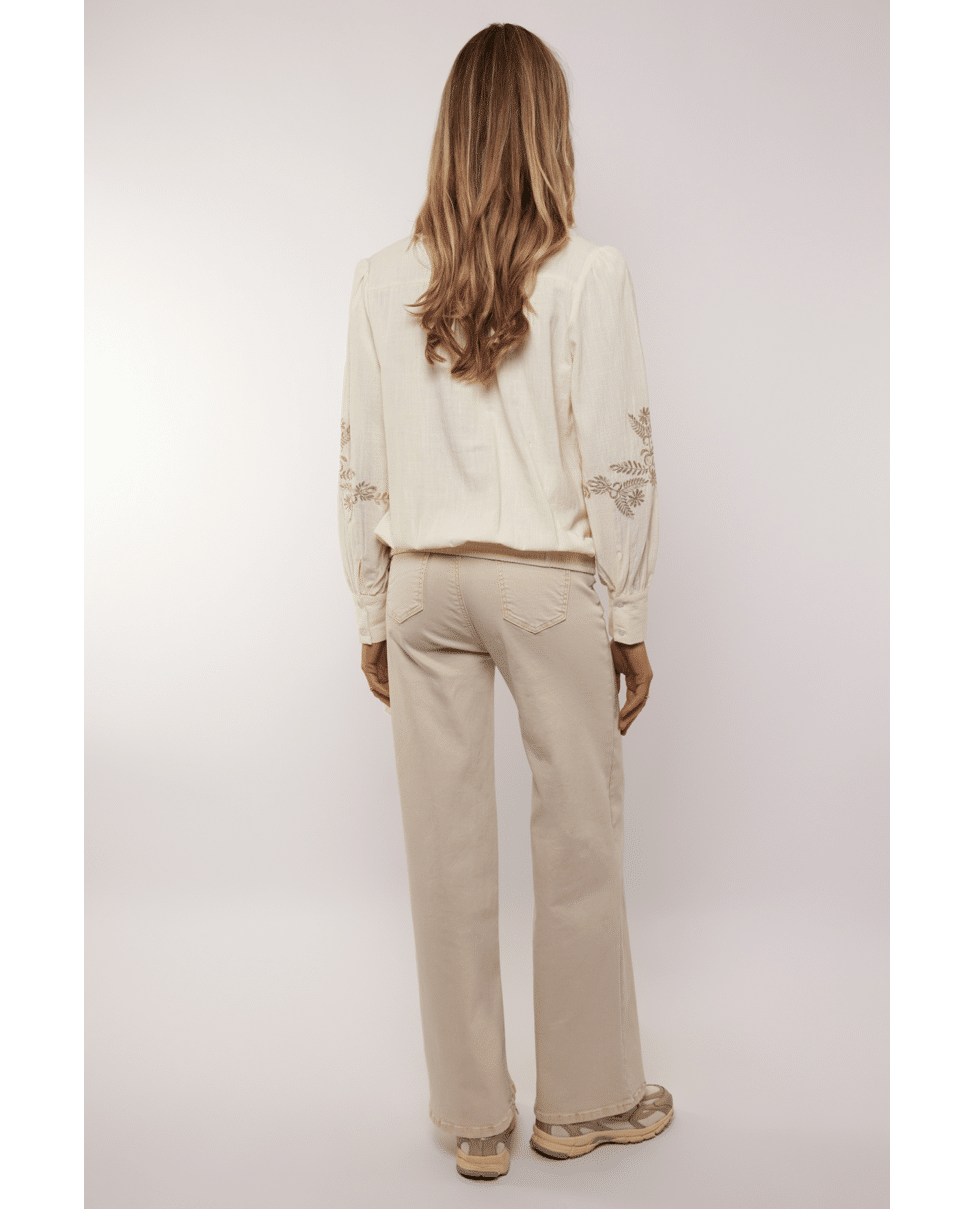 Rechte fit met lichte stretch. Sluit mooi aan in de taille en heup, zonder strak te zitten.