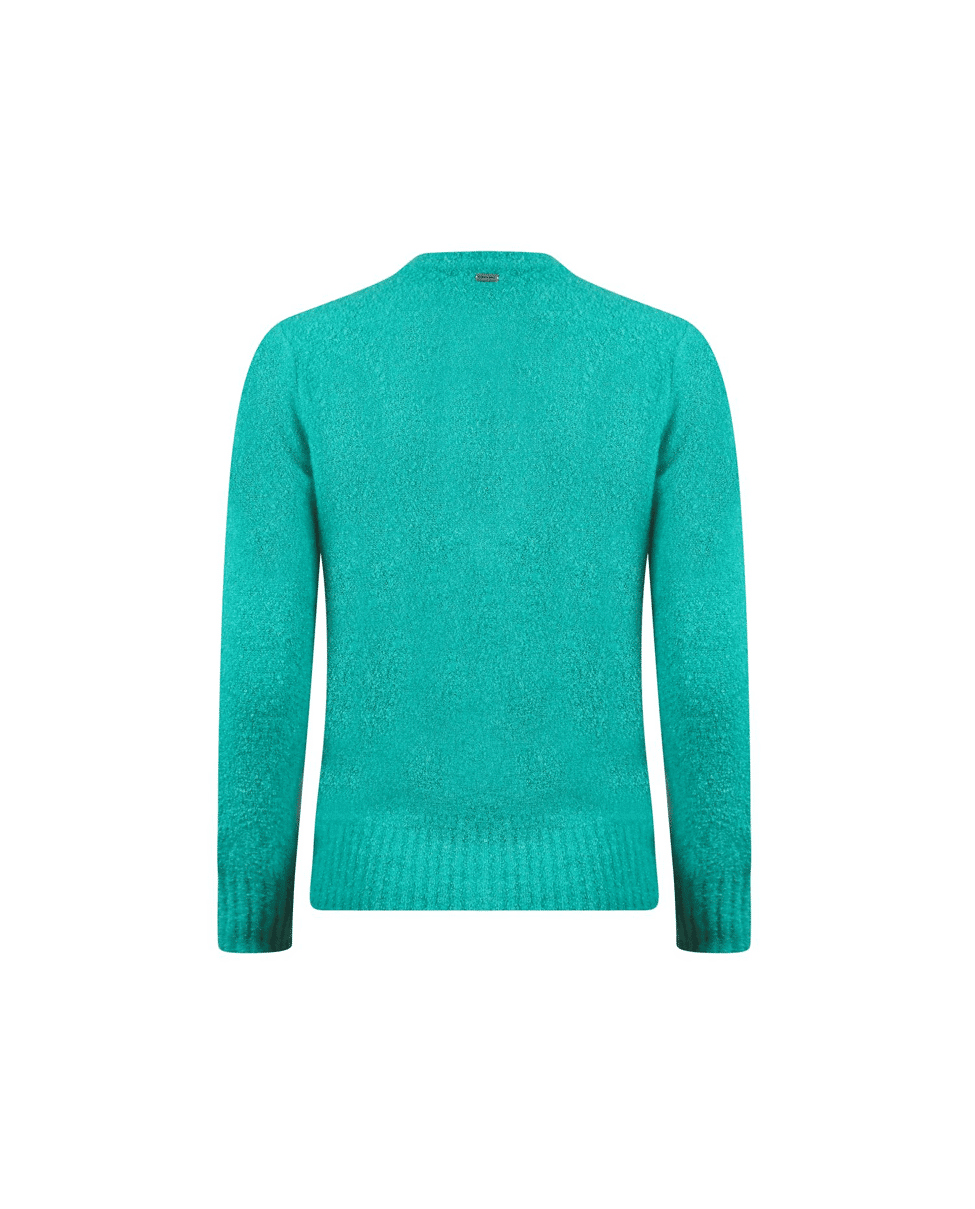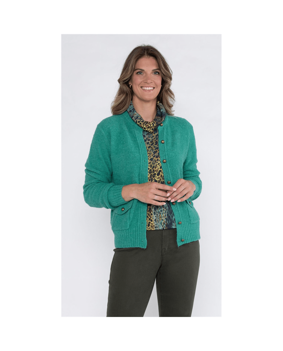 Gebreid damesvest van Roberto Sarto met decoratieve zakjes, bouclé garen, ronde hals en lange mouwen