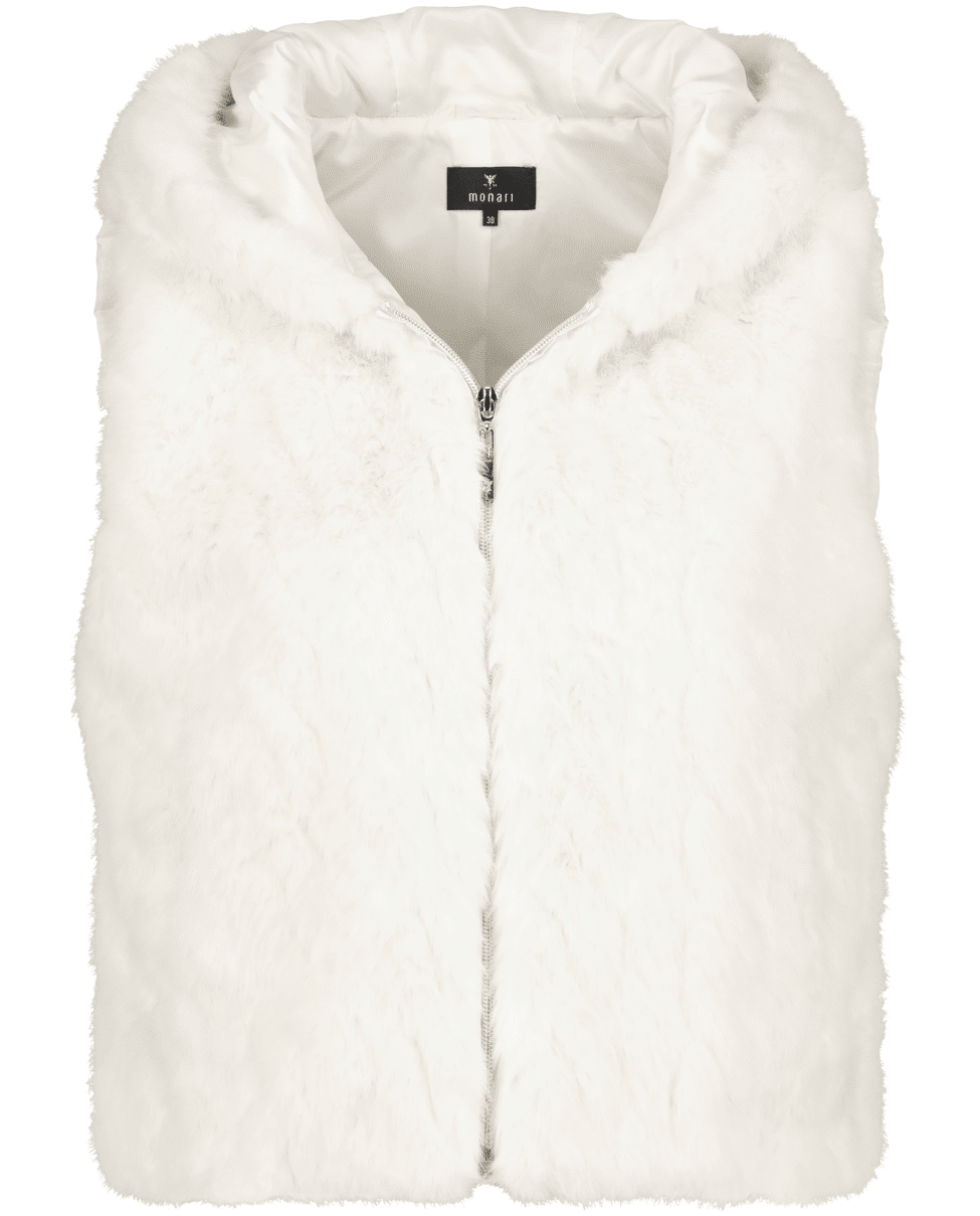 Imitatiebont bodywarmer van Monari met capuchon