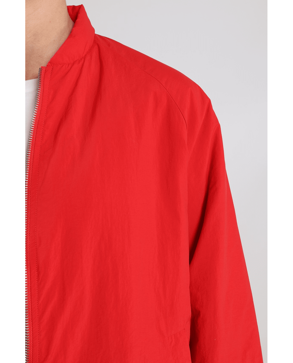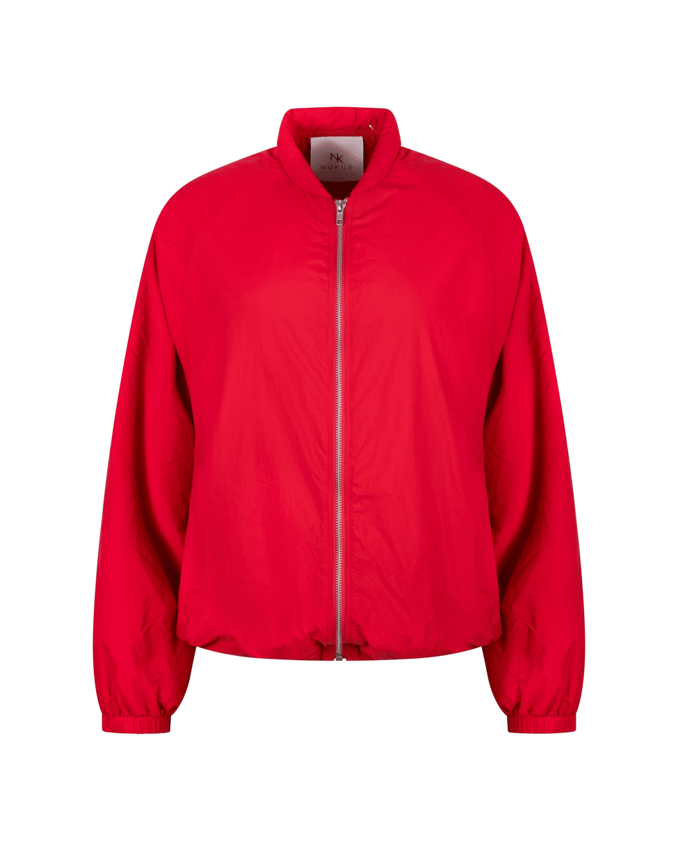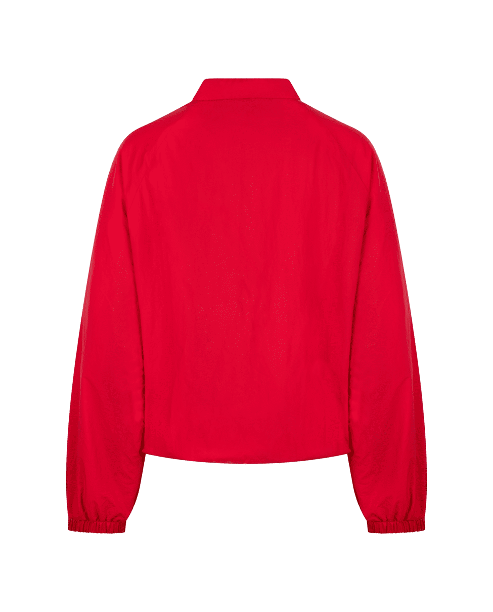 De Jenny Jacket in krachtige roodtint ‘Kiss’ is een licht bomberjasje met ritssluiting en sportieve details. Perfect als voorjaarsjasje of lichte laag in de zomer.