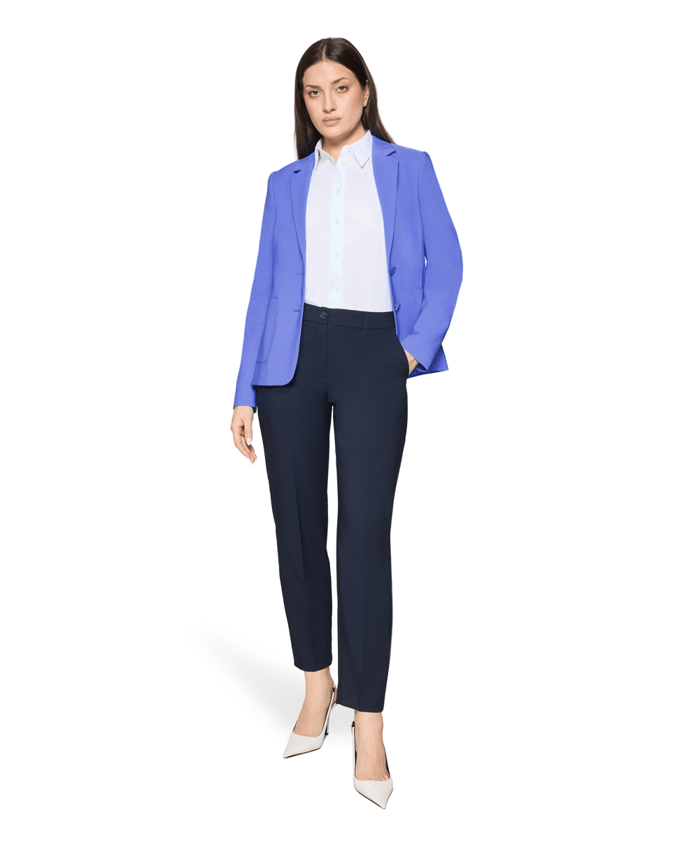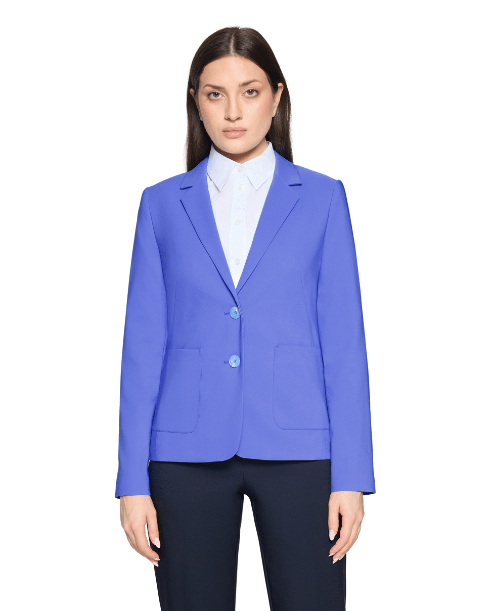 Deze elegante damesblazer met reverskraag en opgestikte zakken geeft elke look een frisse, professionele uitstraling. Ideaal voor werk of formele gelegenheden.