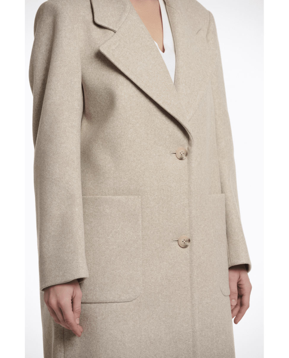De melangekleur en klassieke snit maken deze jas tot een veelzijdig item dat moeiteloos combineert.