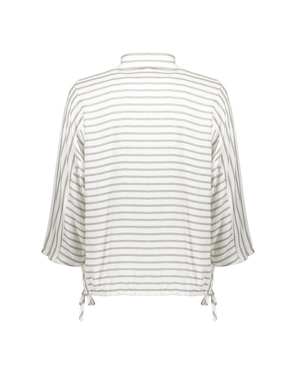 Luchtig, vrouwelijk en net even anders: deze blouse van Geisha met verticale lurexstrepen straalt subtiele elegantie uit. Ideaal voor een zomerse dag op kantoor of een diner op het terras.