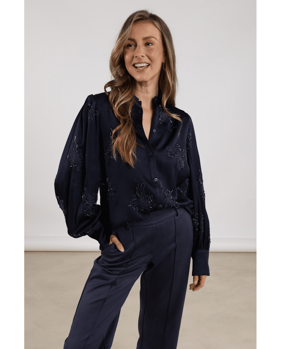 De rijke viscose, vrouwelijke pasvorm en subtiele bloemenborduursels maken deze blouse een tijdloze musthave voor je FW25-garderobe.