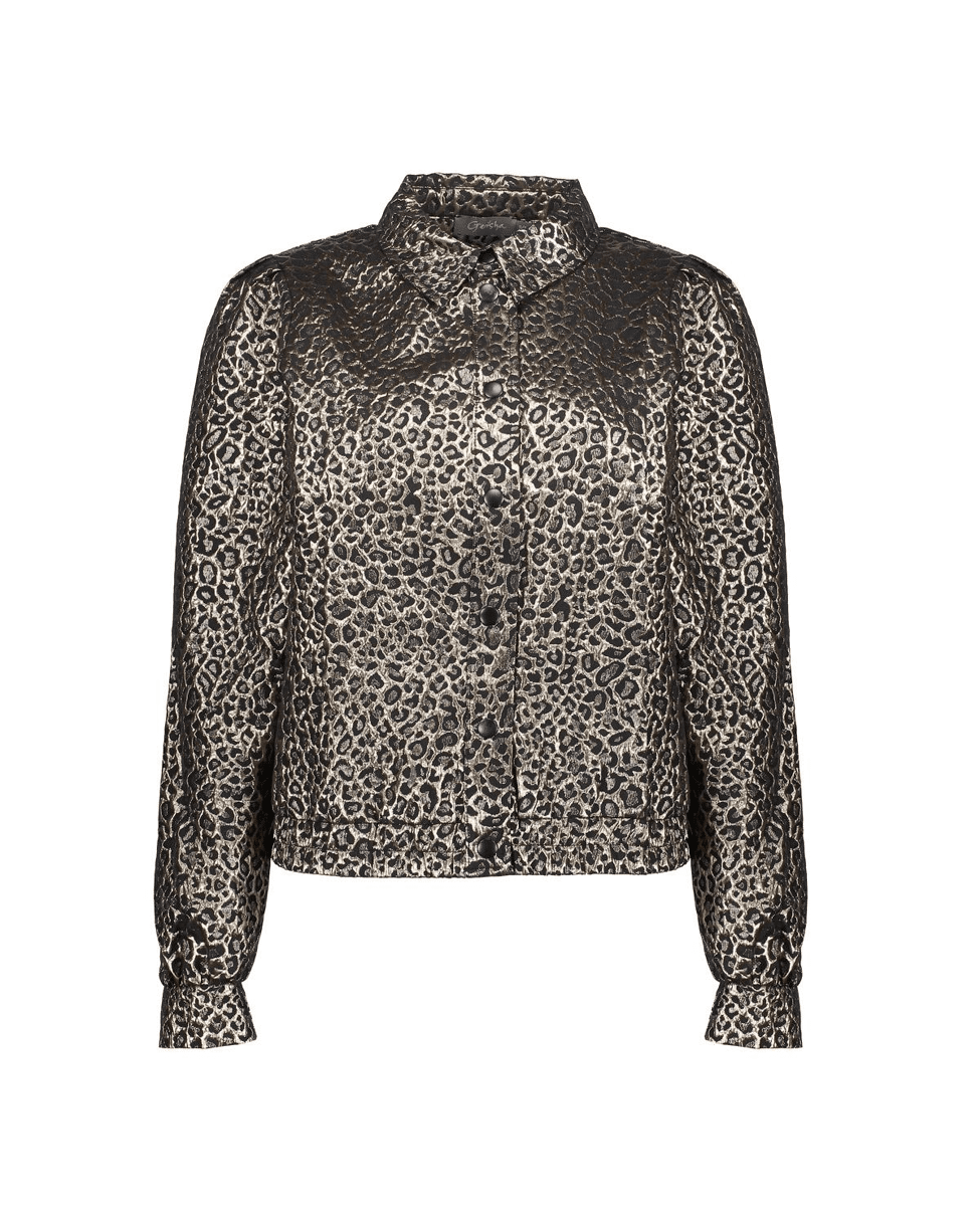 Het metallic garen geeft de animalprint extra diepte en maakt dit jack perfect voor zowel casual als feestelijke looks.