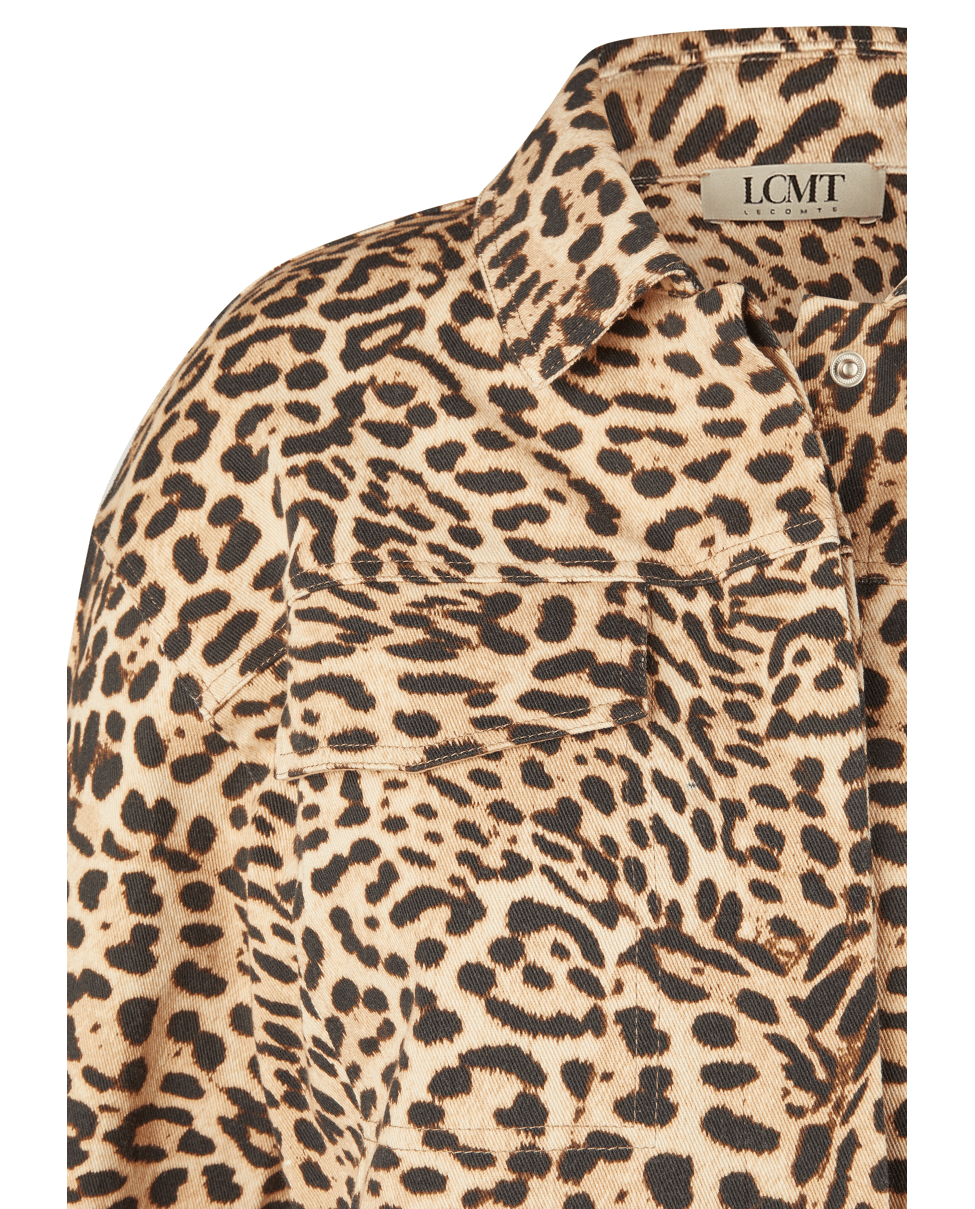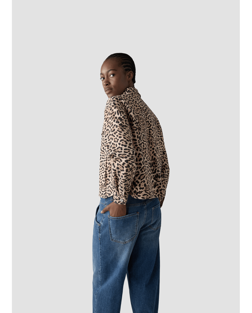 Dames jasje van LeComte met luipaard print, klassieke kraag, verborgen drukknoopsluiting, borstzakken en lange mouwen
