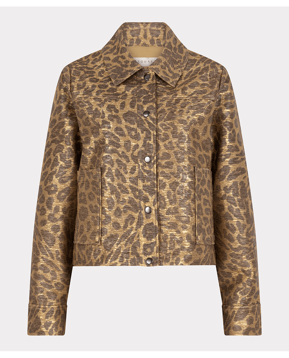 Dames jasje van Esqualo met luipaard print, opgestikte zakken en overhemdkraag