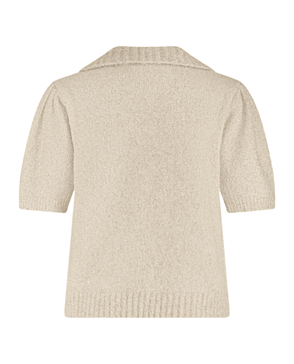 Sandra Pullover – Gebreide dames polotrui van Nukus met korte mouwen, kraag en knoopsluiting