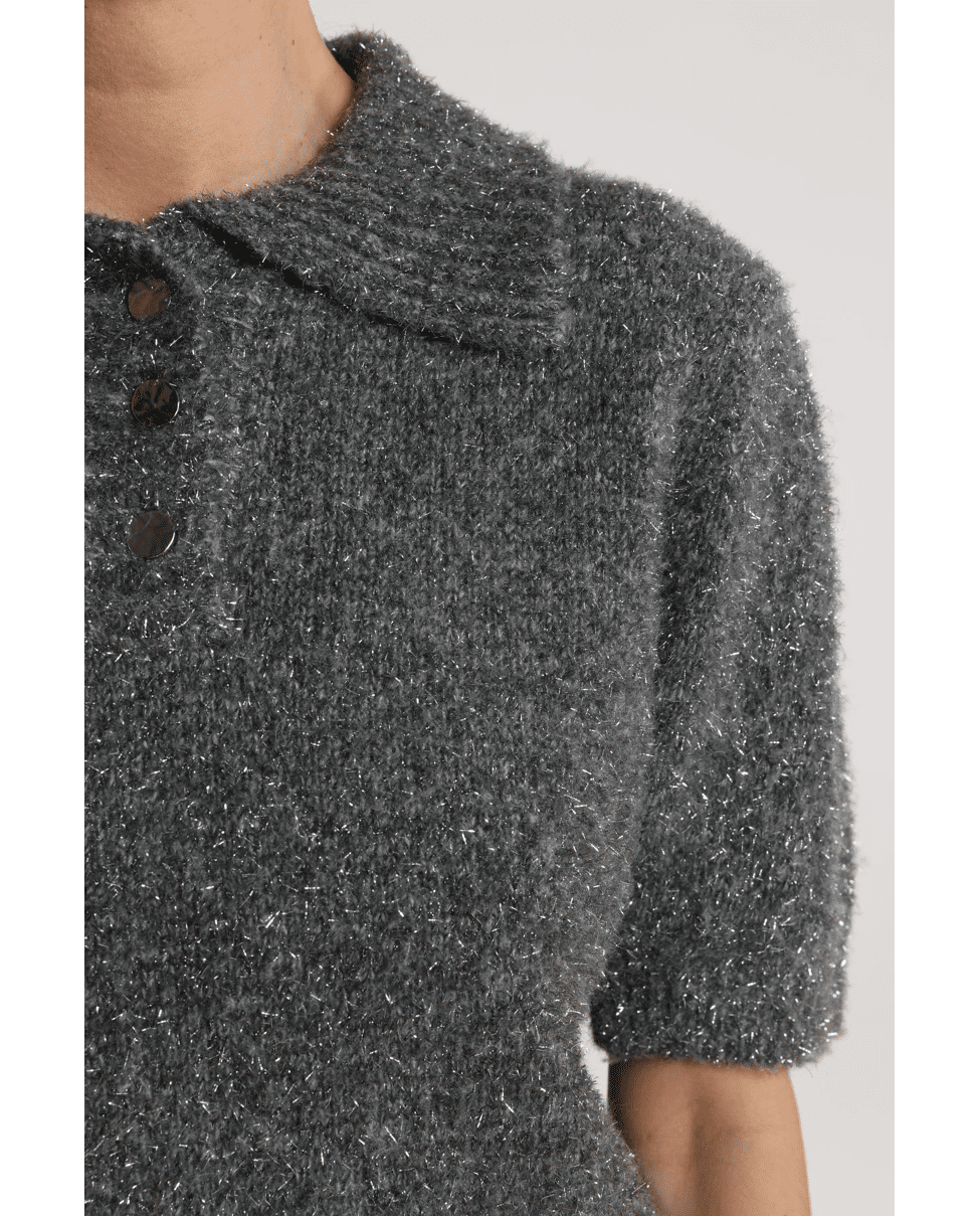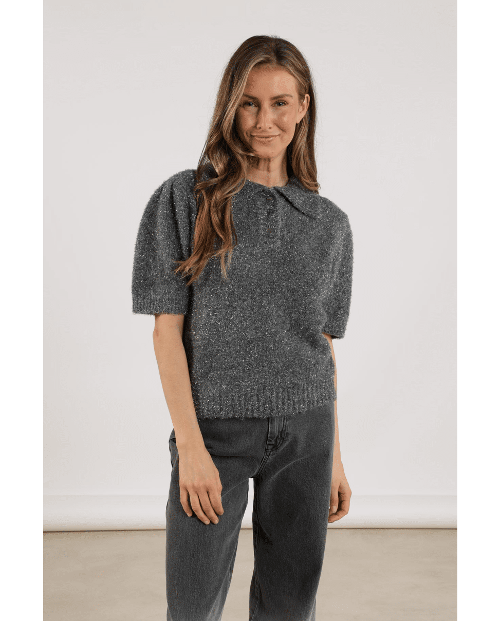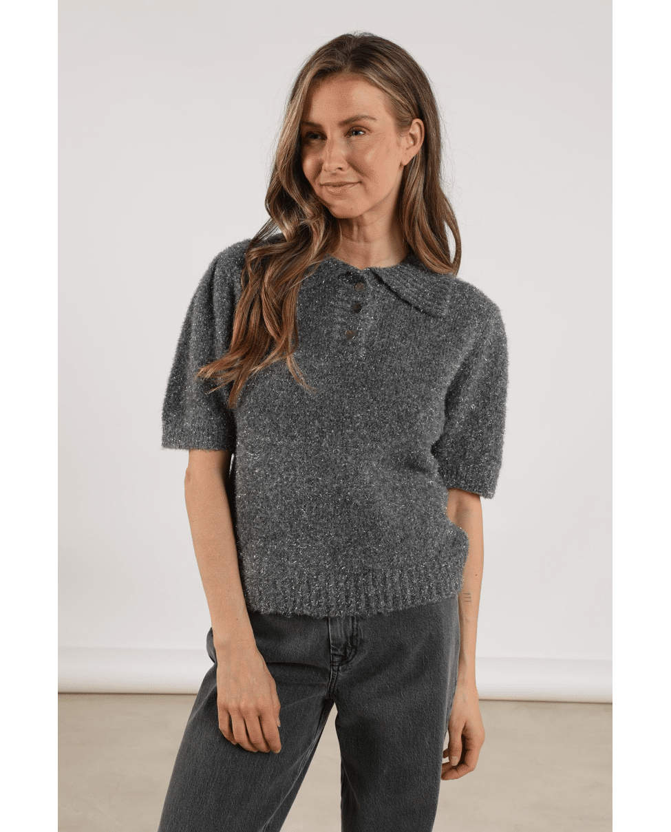 De Sandra Pullover is een moderne variant op de klassieke polo. Dit stijlvolle item heeft een op maat gesneden pasvorm, twee knoopjes bij de hals en is verfijnd met een subtiel lurexdraadje voor een vrouwelijke touch.