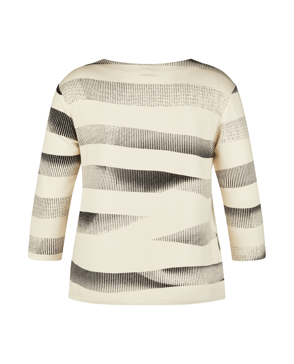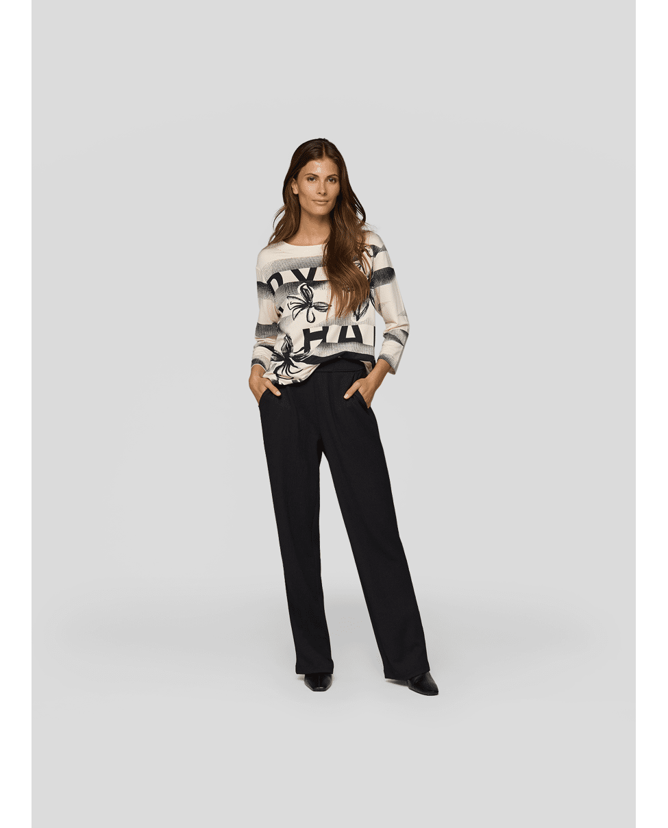 Het opvallende dessin combineert strepen, bloemen en tekst voor een moderne, eigentijdse uitstraling.