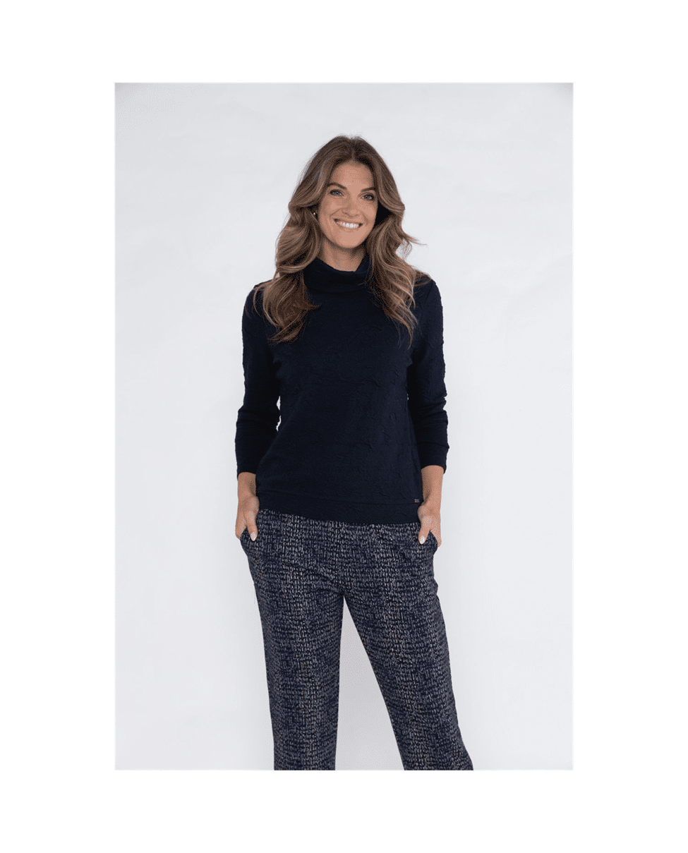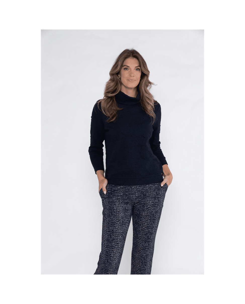 Dames shirt van Roberto Sarto met hangcol, brede onderboord en lange mouwen