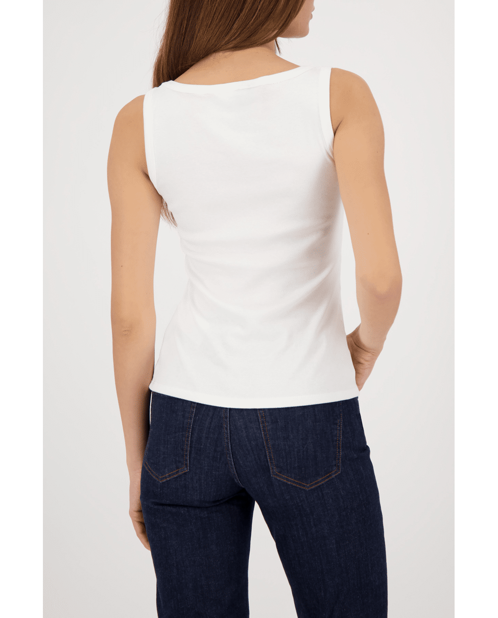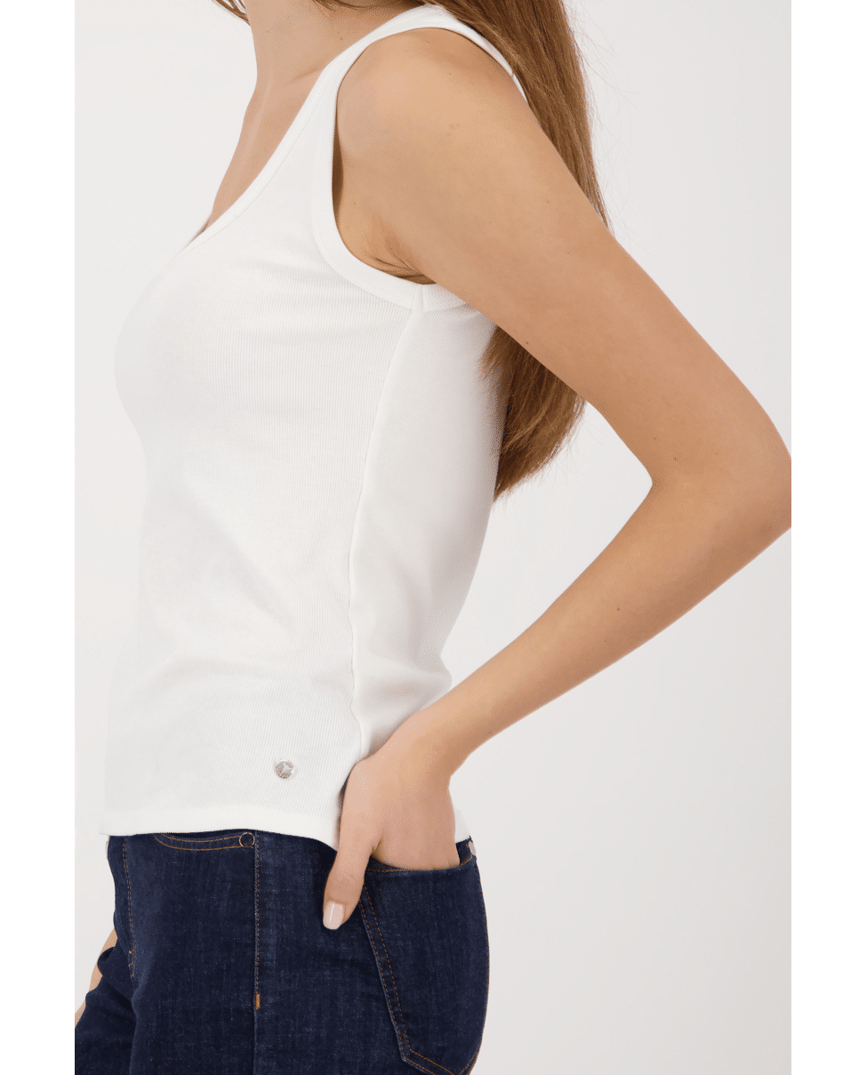 Een onmisbaar item in je garderobe: dit topje is ideaal als basis onder een blouse of gewoon solo op een warme dag.