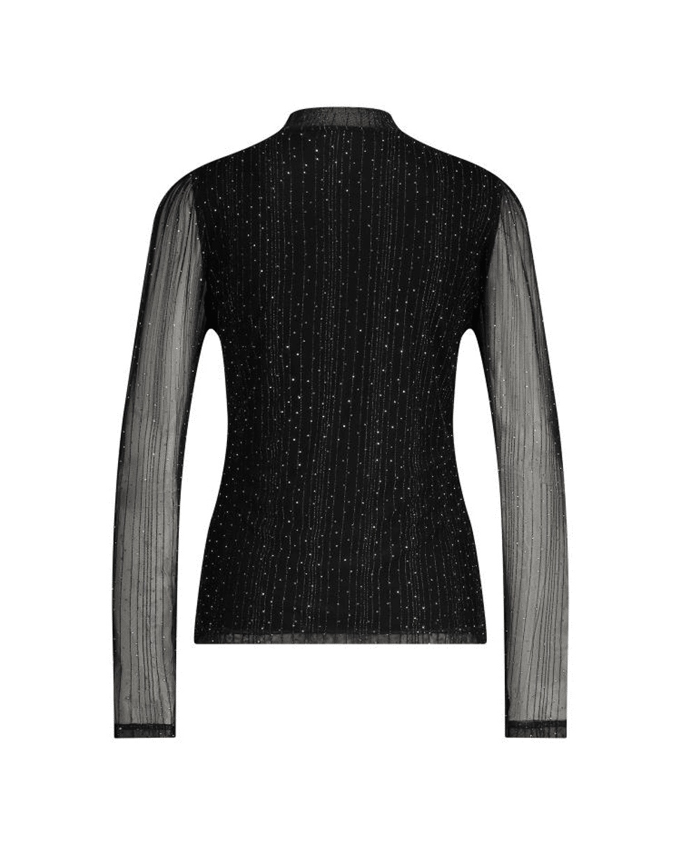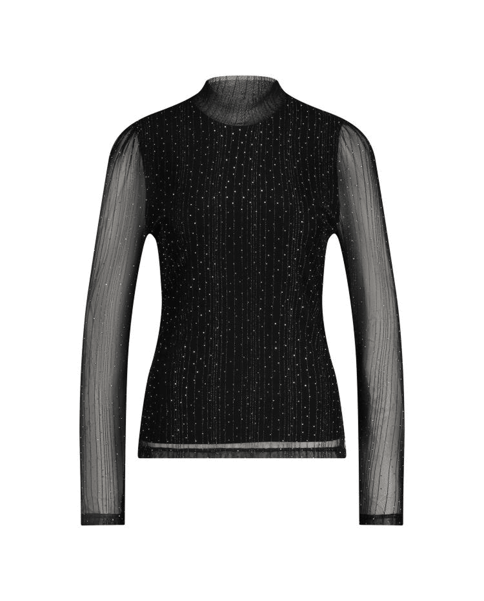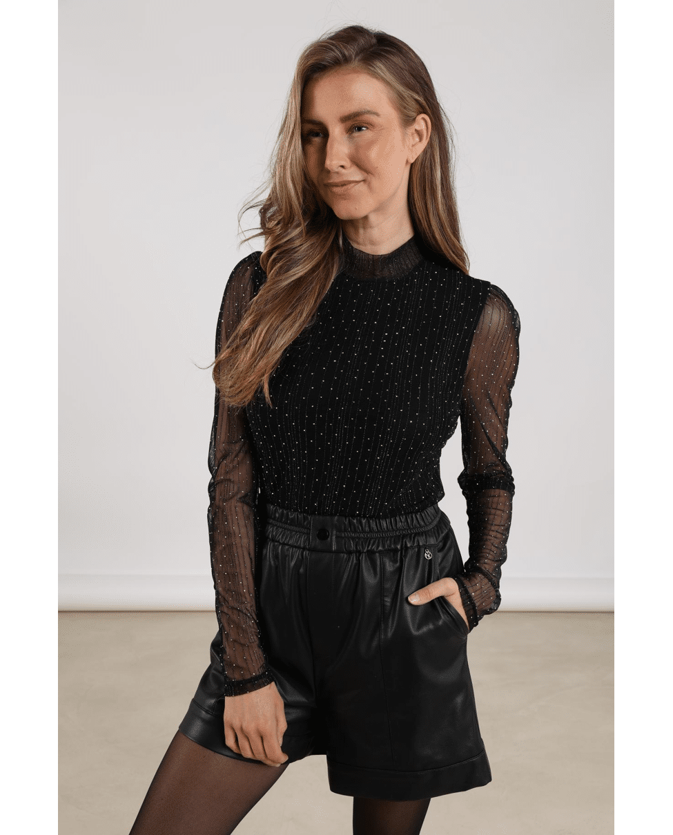 Puck - Dames top van Nukus met strass, opstaande hals en lange mouwen