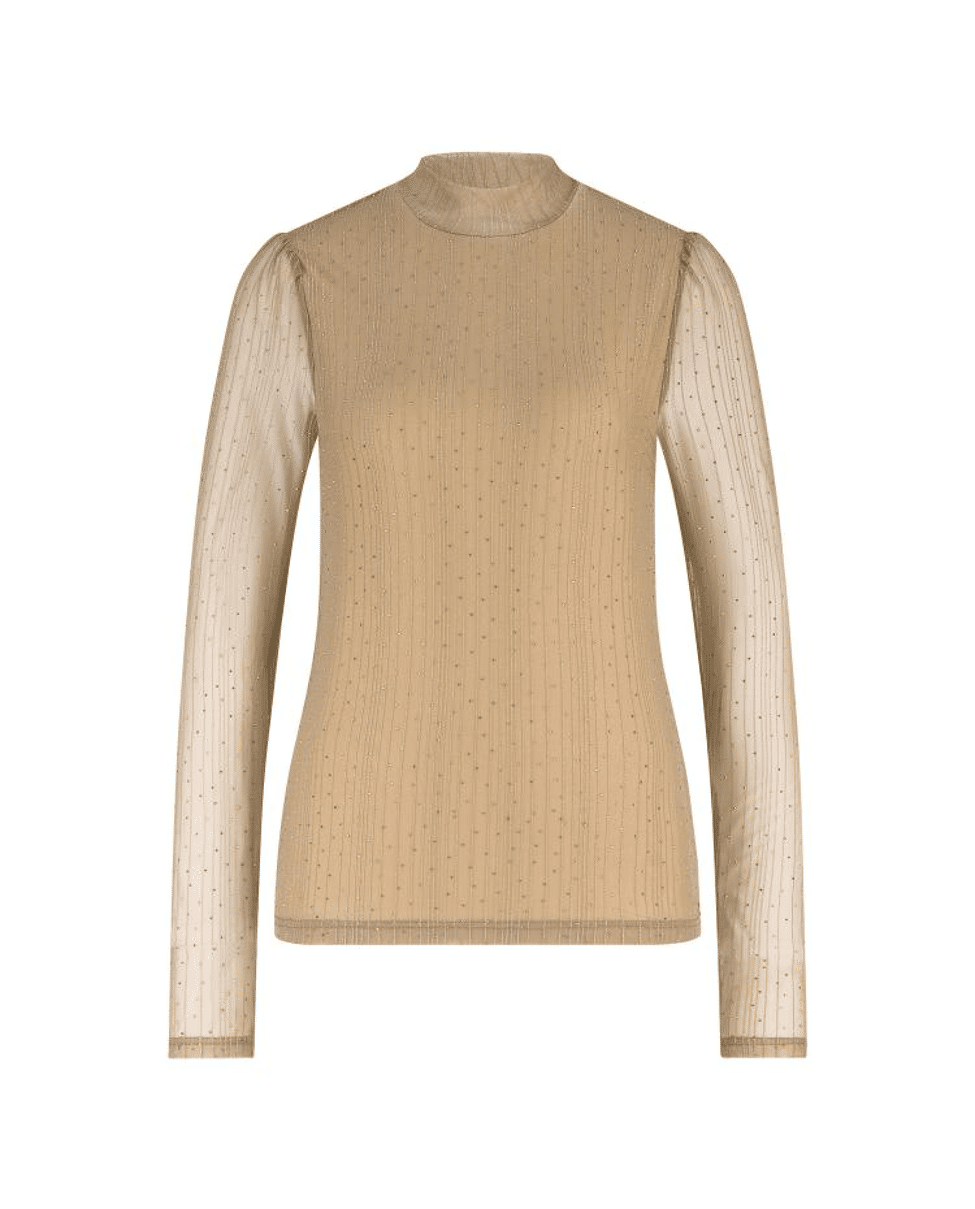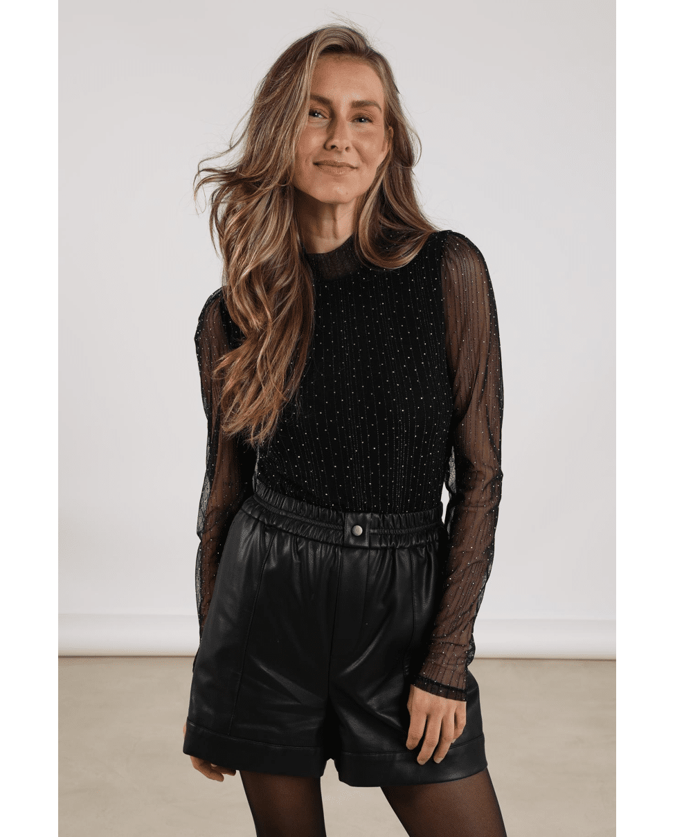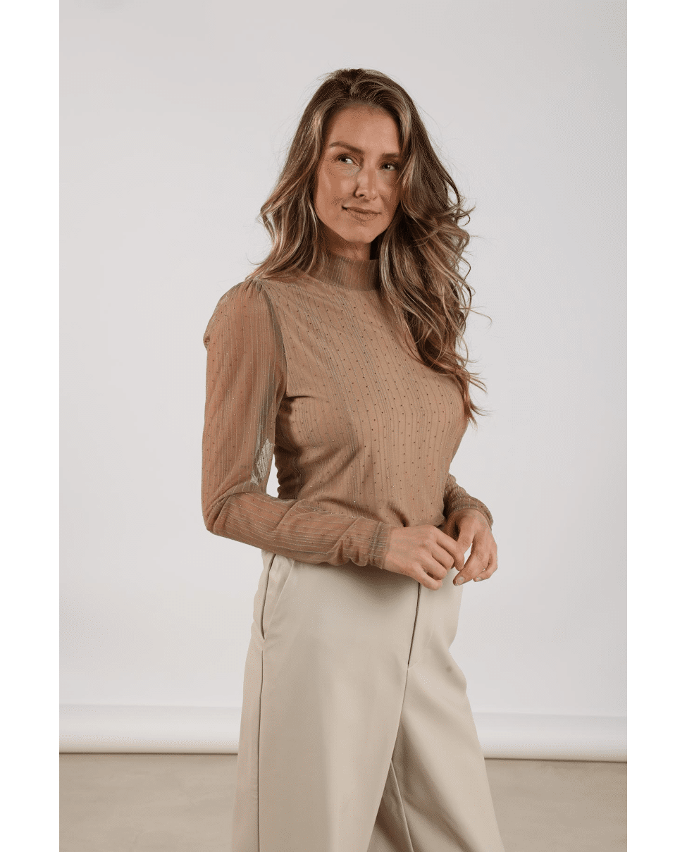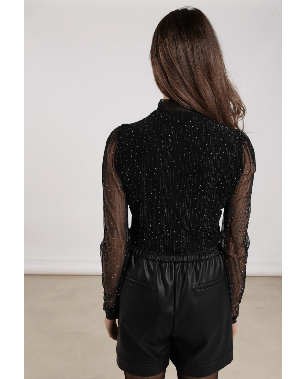 Puck - Dames top van Nukus met strass, opstaande hals en lange mouwen