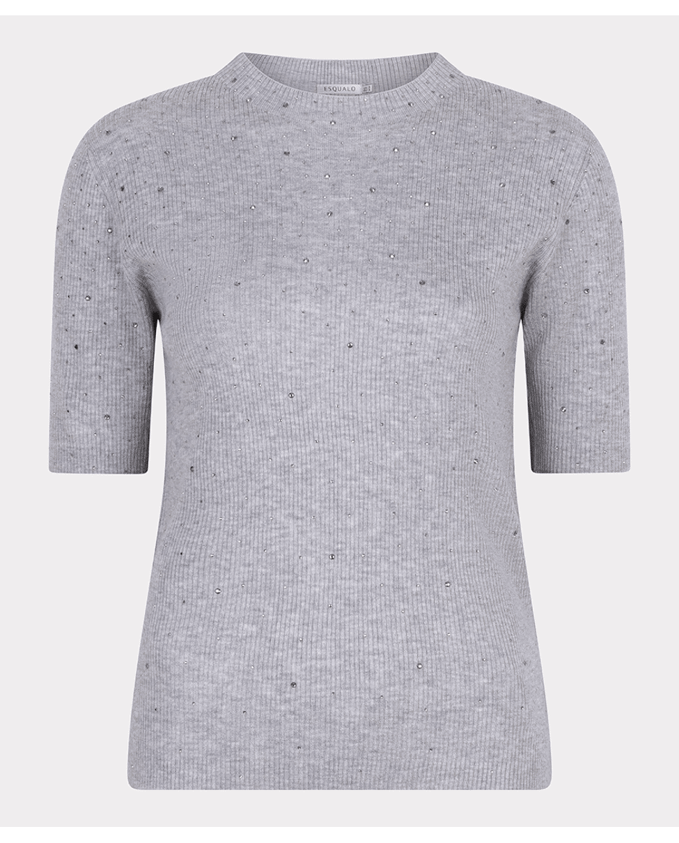 Damestrui van Esqualo met studs, korte mouwen, hoge ronde hals en ribstructuur