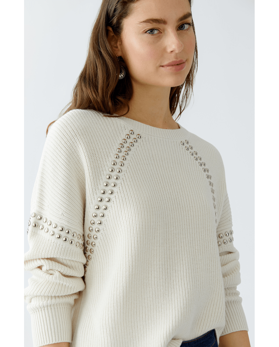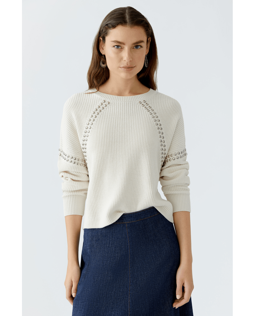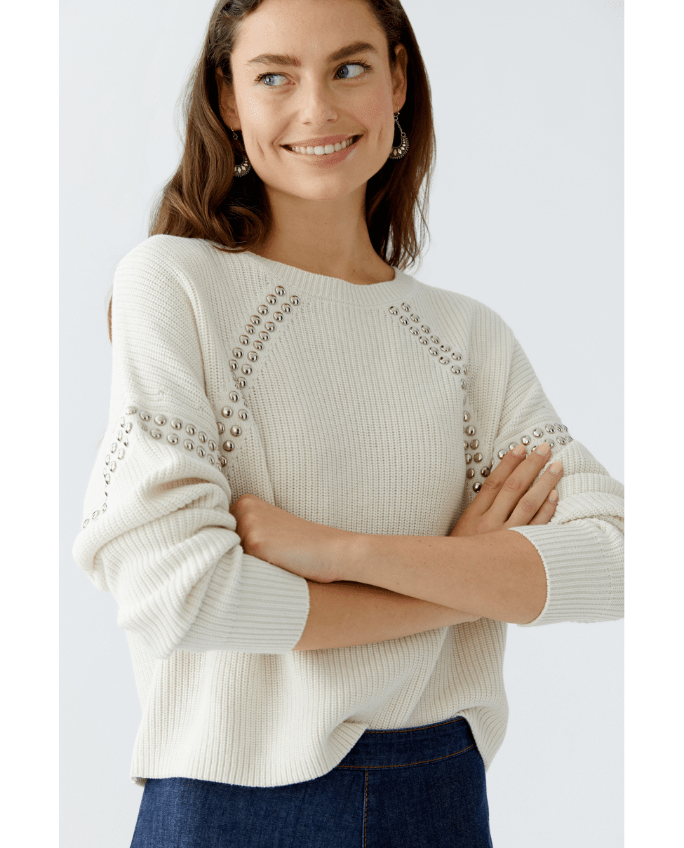 Gebreide damestrui van Oui met studs, ronde hals en lange mouwen
