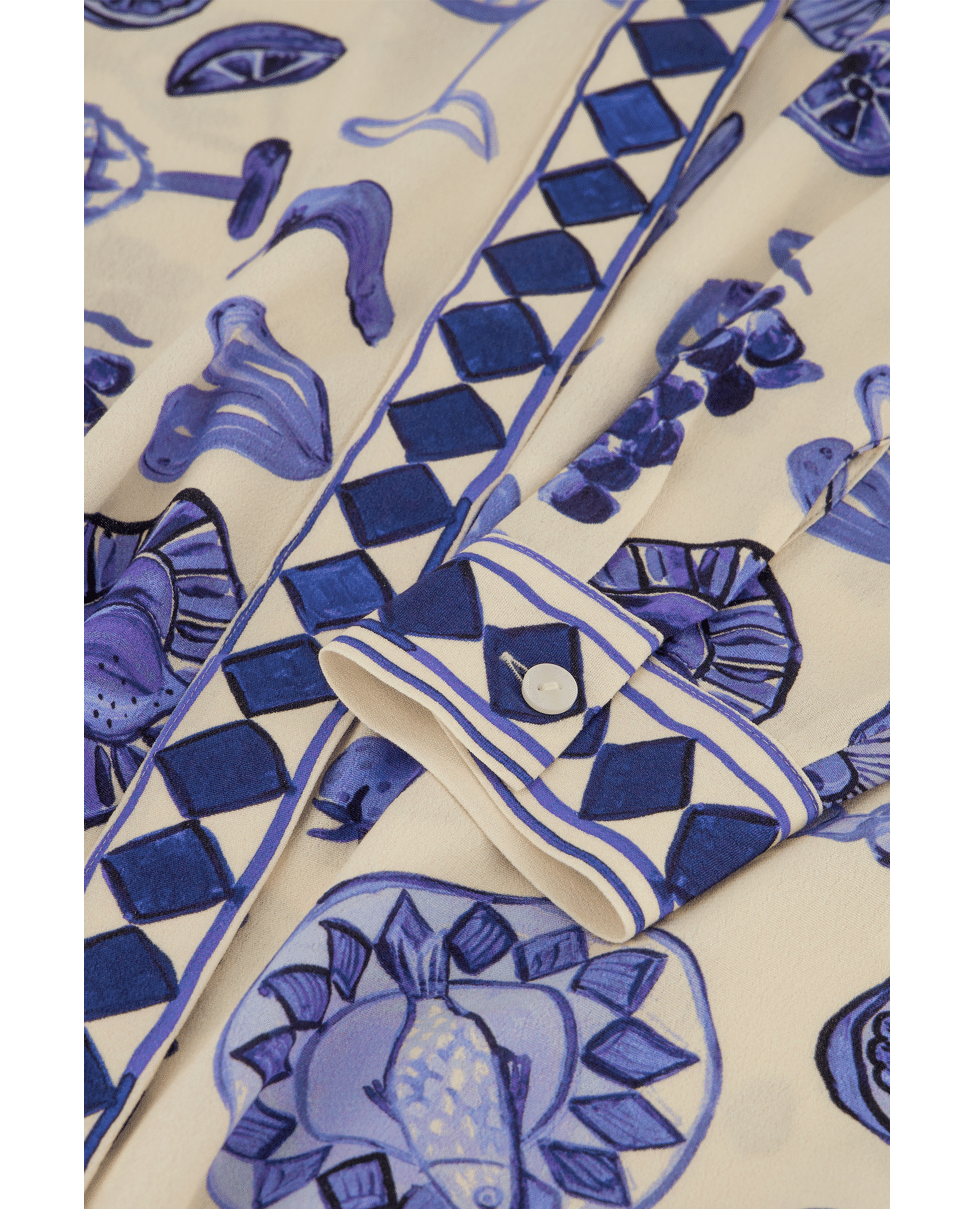 Gala - Damesblouse van Fabienne Chapot met eten, servies en bestek, lange mouwen, knoopsluiting en overhemdkraag