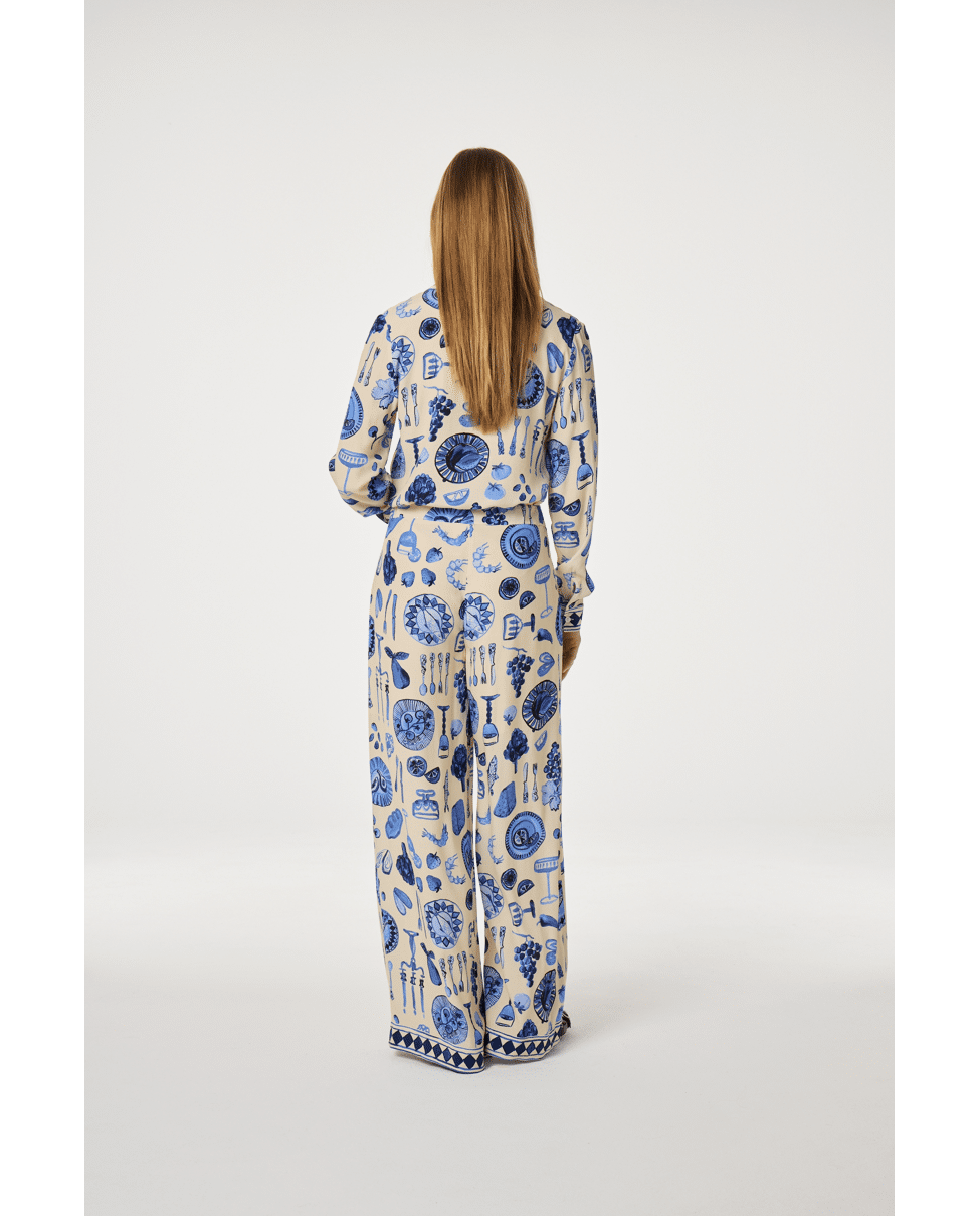 Gala – Blouse van Fabienne Chapot met eten, servies en bestek