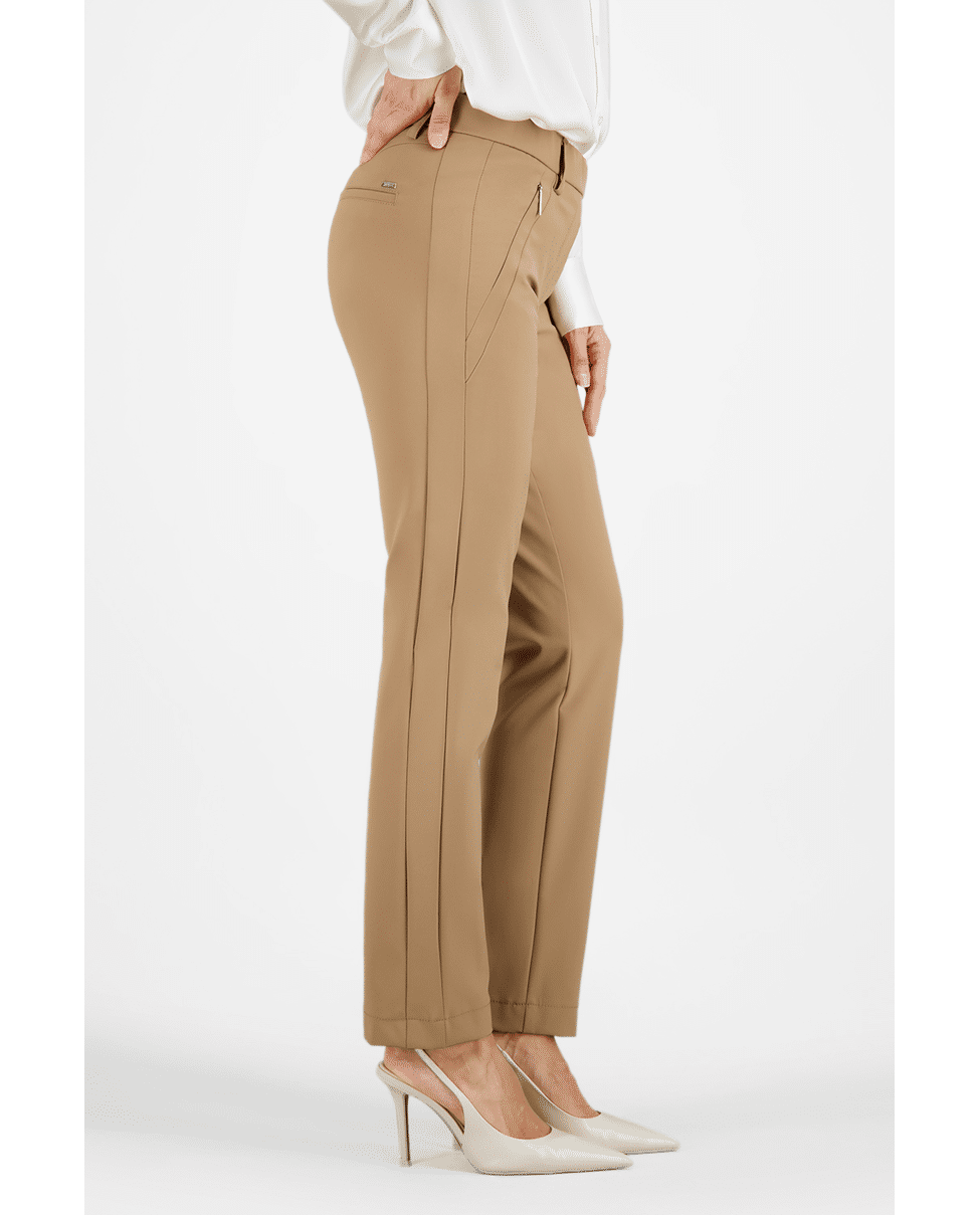 ZENE57 - Pull-on damesbroek van Gardeur met brede bies, ritszakken voor, riemlussen en paspelzak achter