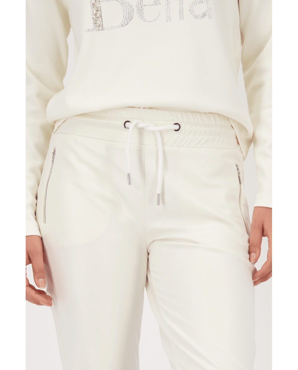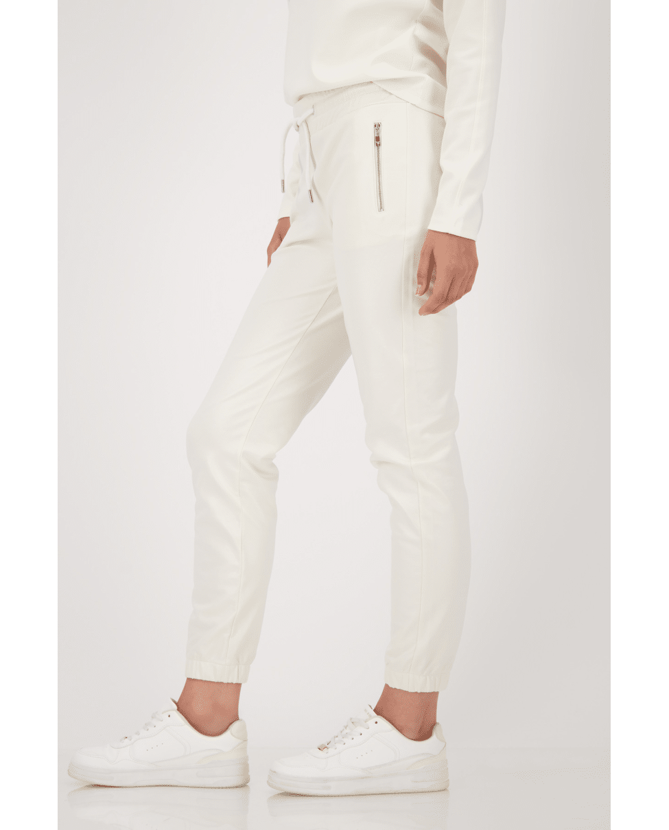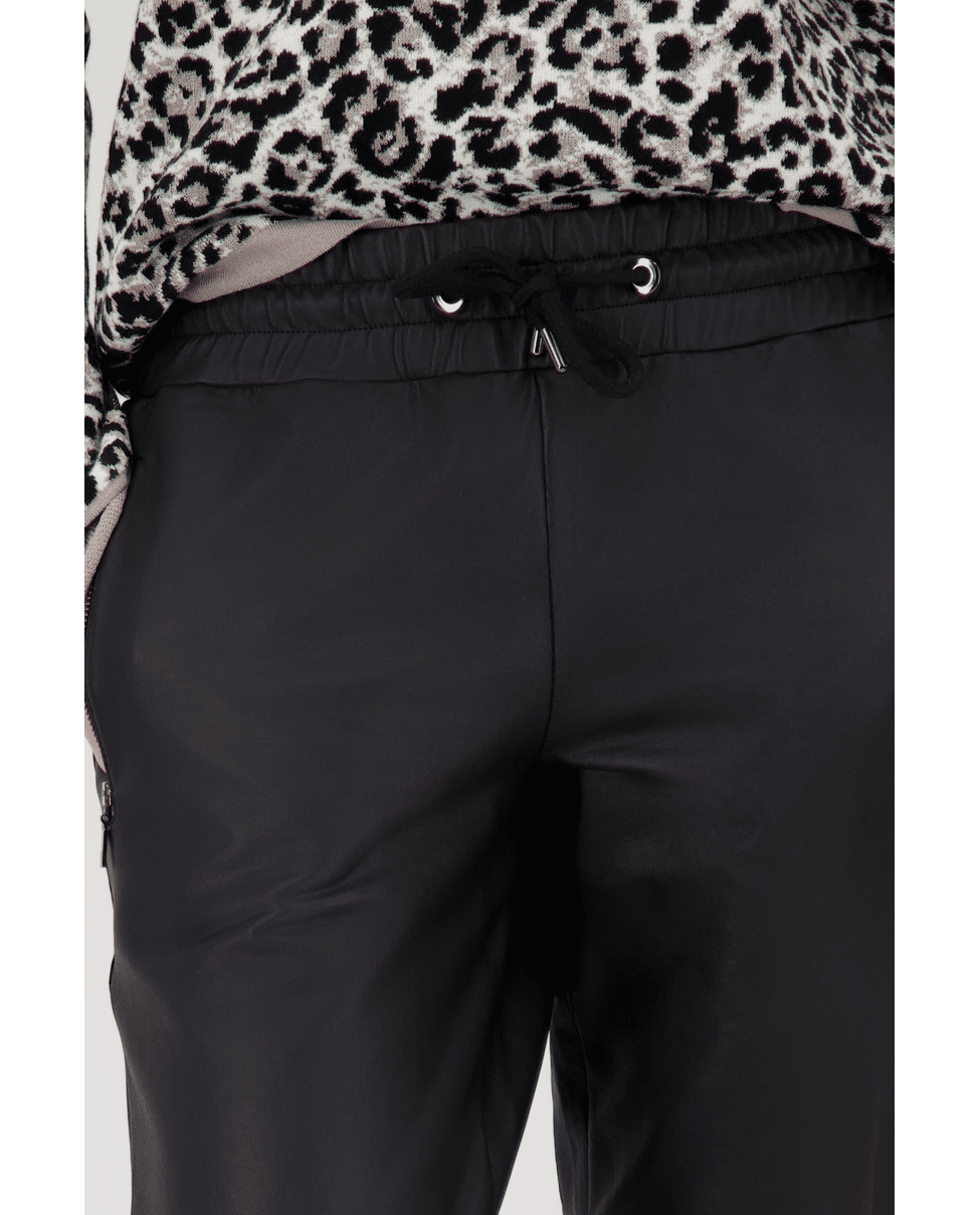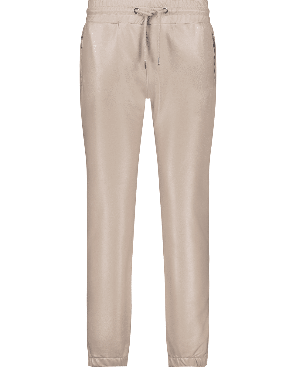 De combinatie van joggerstijl met glanzende finish maakt deze broek nonchalant én stijlvol tegelijk.