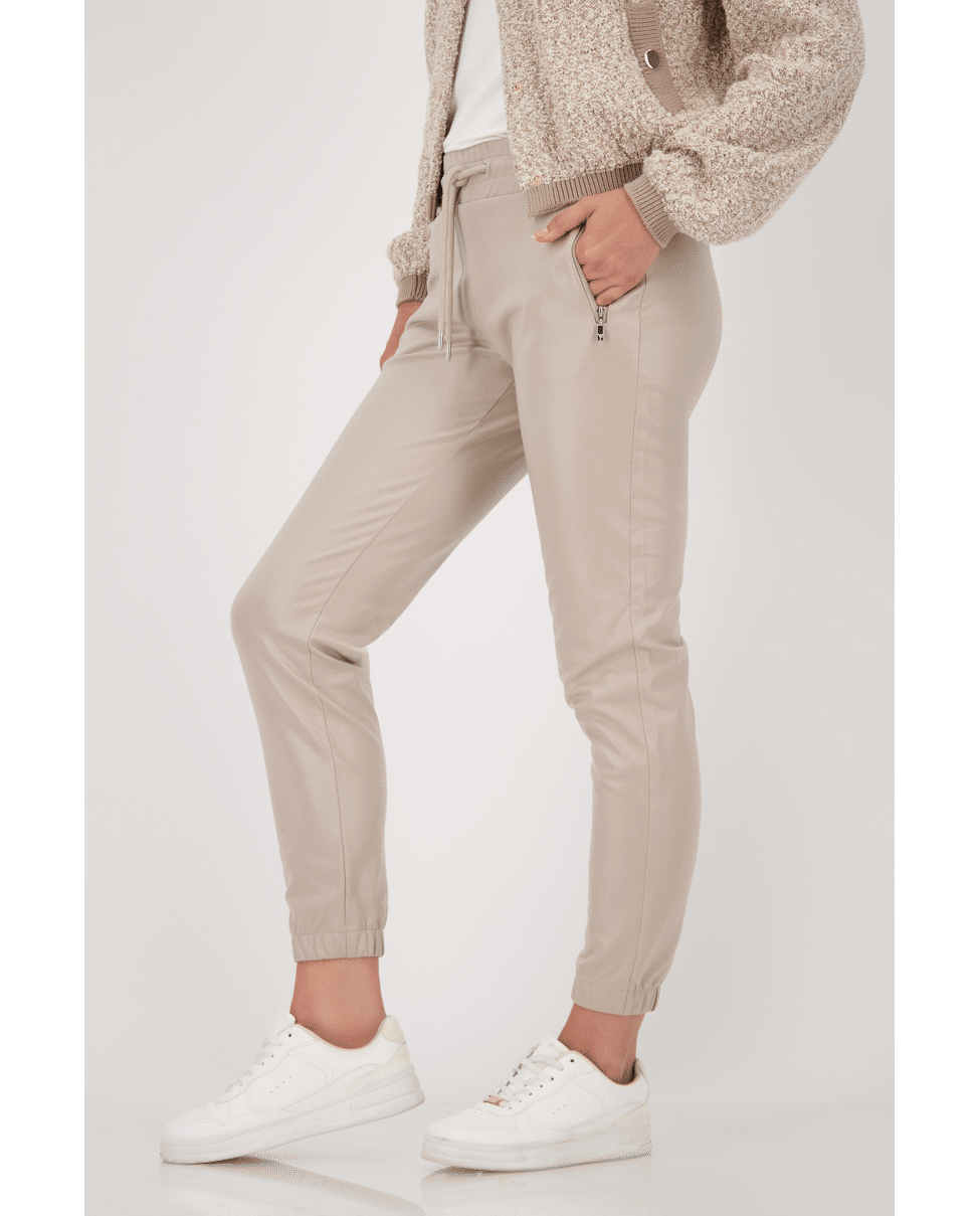 Een comfortabele broek met lederlook. Mooi te dragen met knitwear of een blouse – zowel casual als chic.