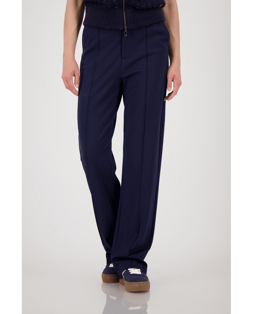 De diepe kleur en de sierbiezen geven deze broek een elegante twist – moeiteloos te combineren met knitwear of een blazer.