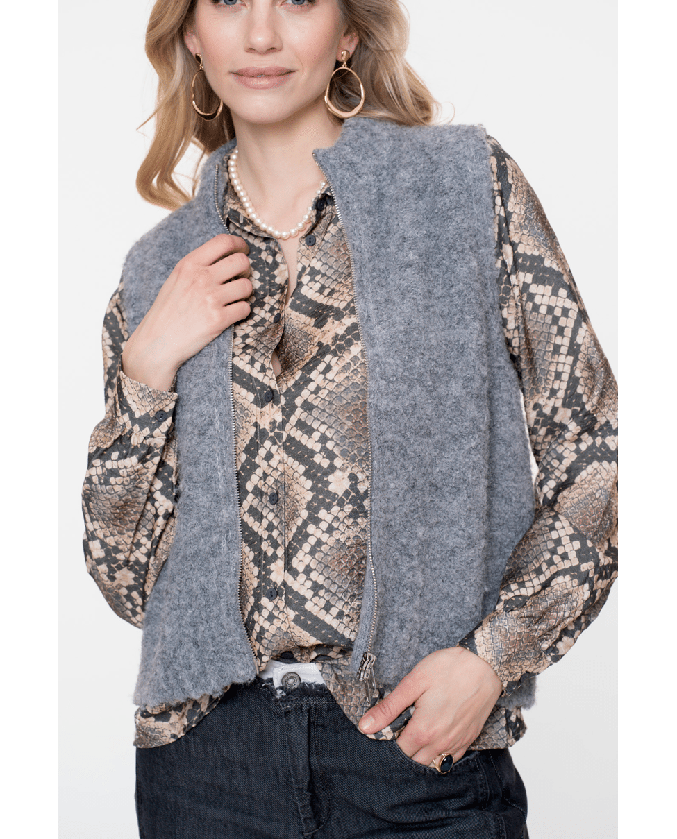 De combinatie van de kleur en het ritsdetail geeft dit gilet een stoere, sportieve uitstraling.