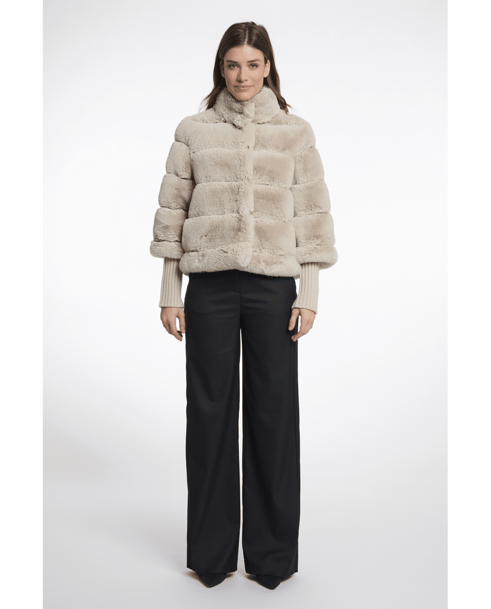 Sallie – Dames kort jack van Rino&Pelle met imitatiebont, opstaande halslijn, lange mouwen met hoge gebreide