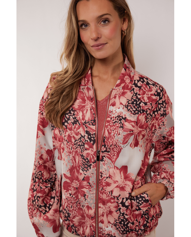 Oaklyn – Dames bomberjack van G-maxx met bloemendessin, steekzakken en ritssluiting