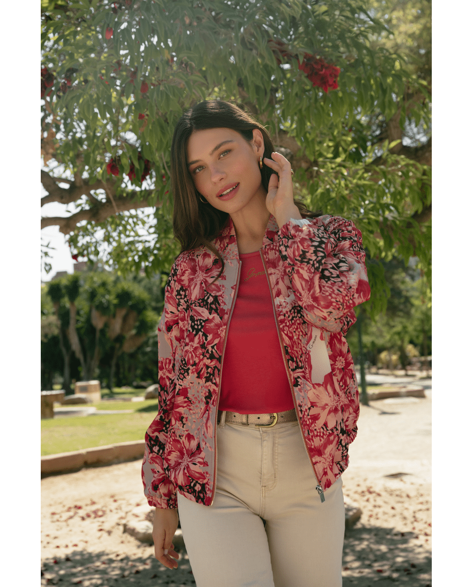Dit luchtige bomberjack met uitgesproken print is perfect voor frisse lentedagen. Combineer ‘m nonchalant met denim of draag als eyecatcher over een effen outfit.
