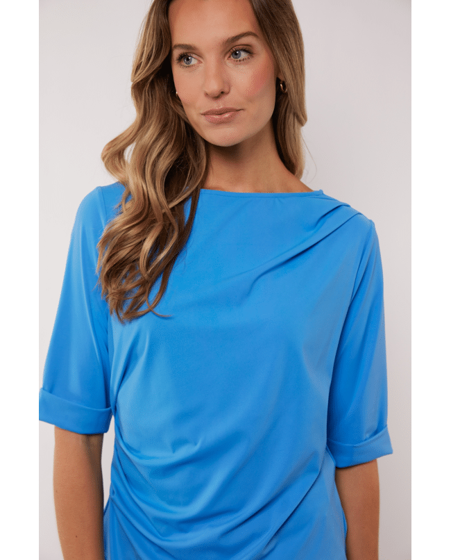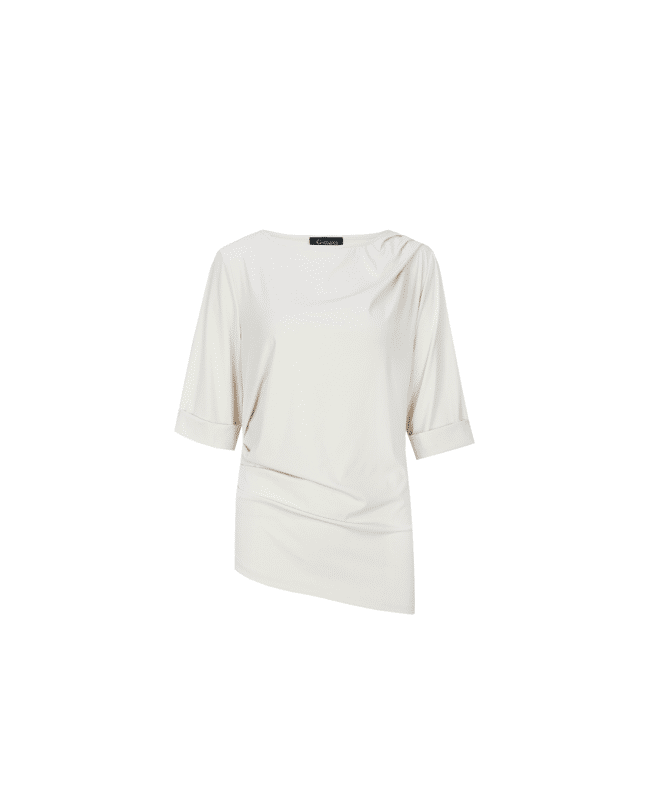 Romina - Damestop van G-maxx met asymmetrische voorkant met plooidetails, boothals en halflange mouwen