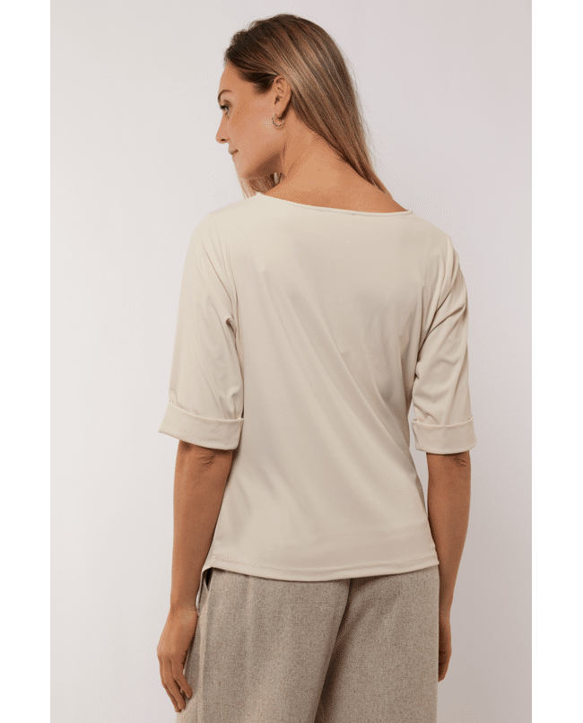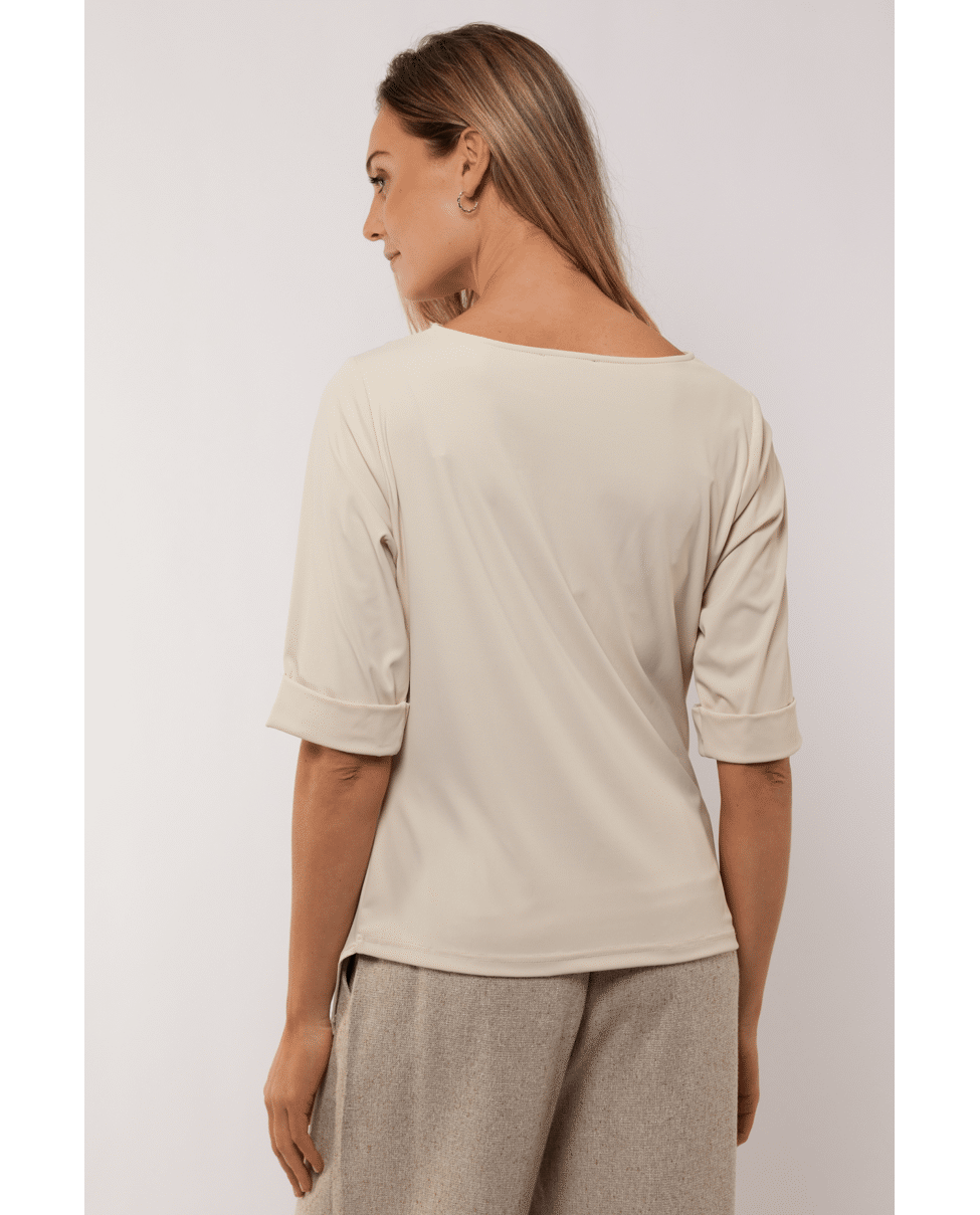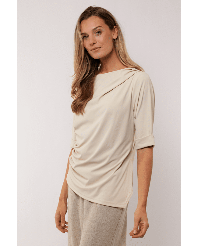 De gedrapeerde halslijn en flatterende fit maken deze top net even anders. Mooi bij een jeans of onder een blazer.