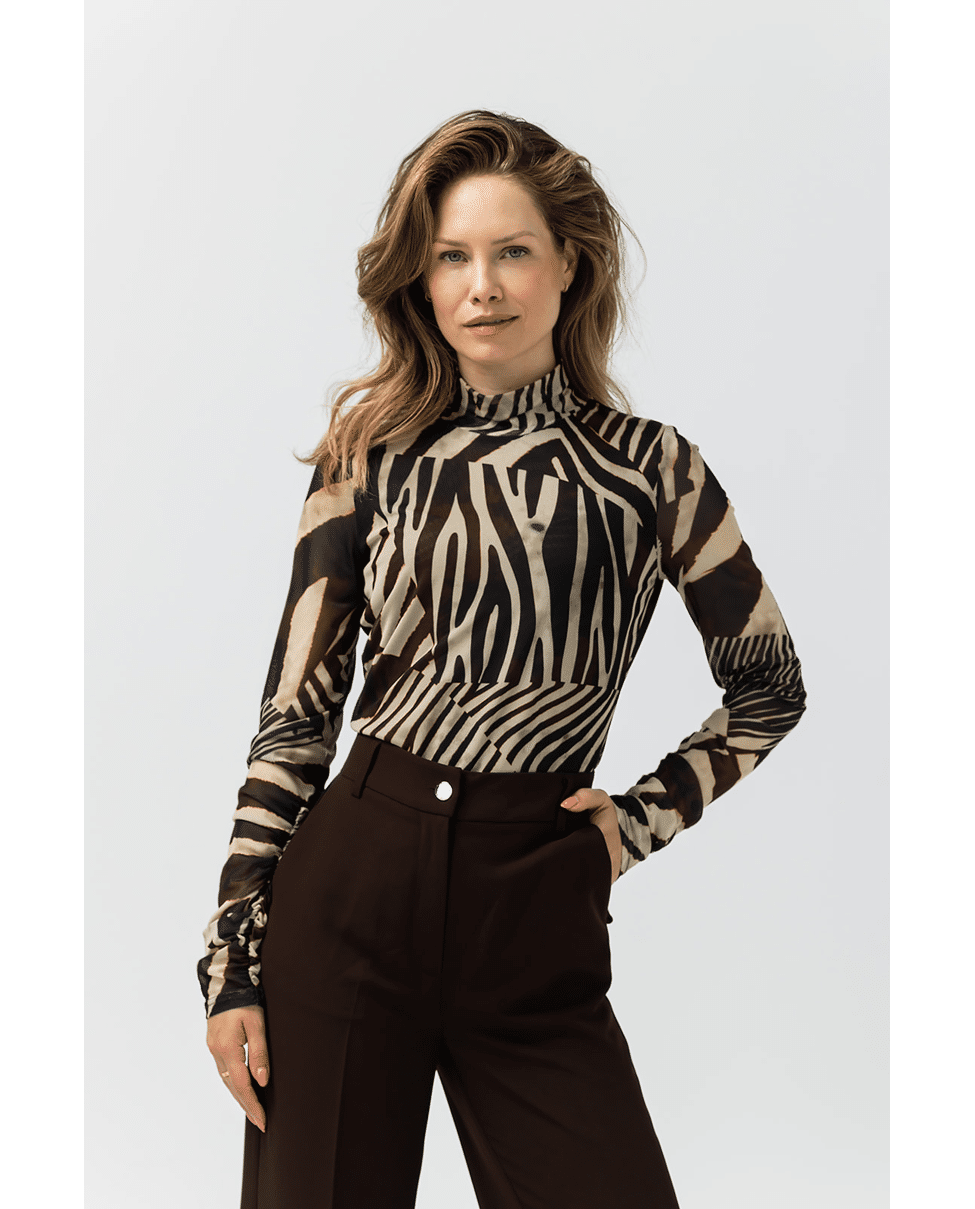 De col en het grafisch dessin maken deze top ideaal onder een blazer of gilet. Gemaakt om mee te combineren.