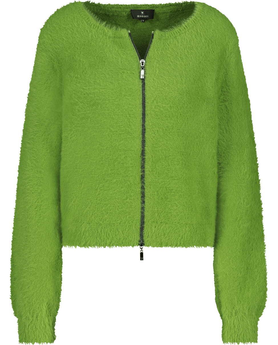 Kort damesvest van Monari met zachte breistructuur, ritssluiting, ronde halslijn en lange mouwen