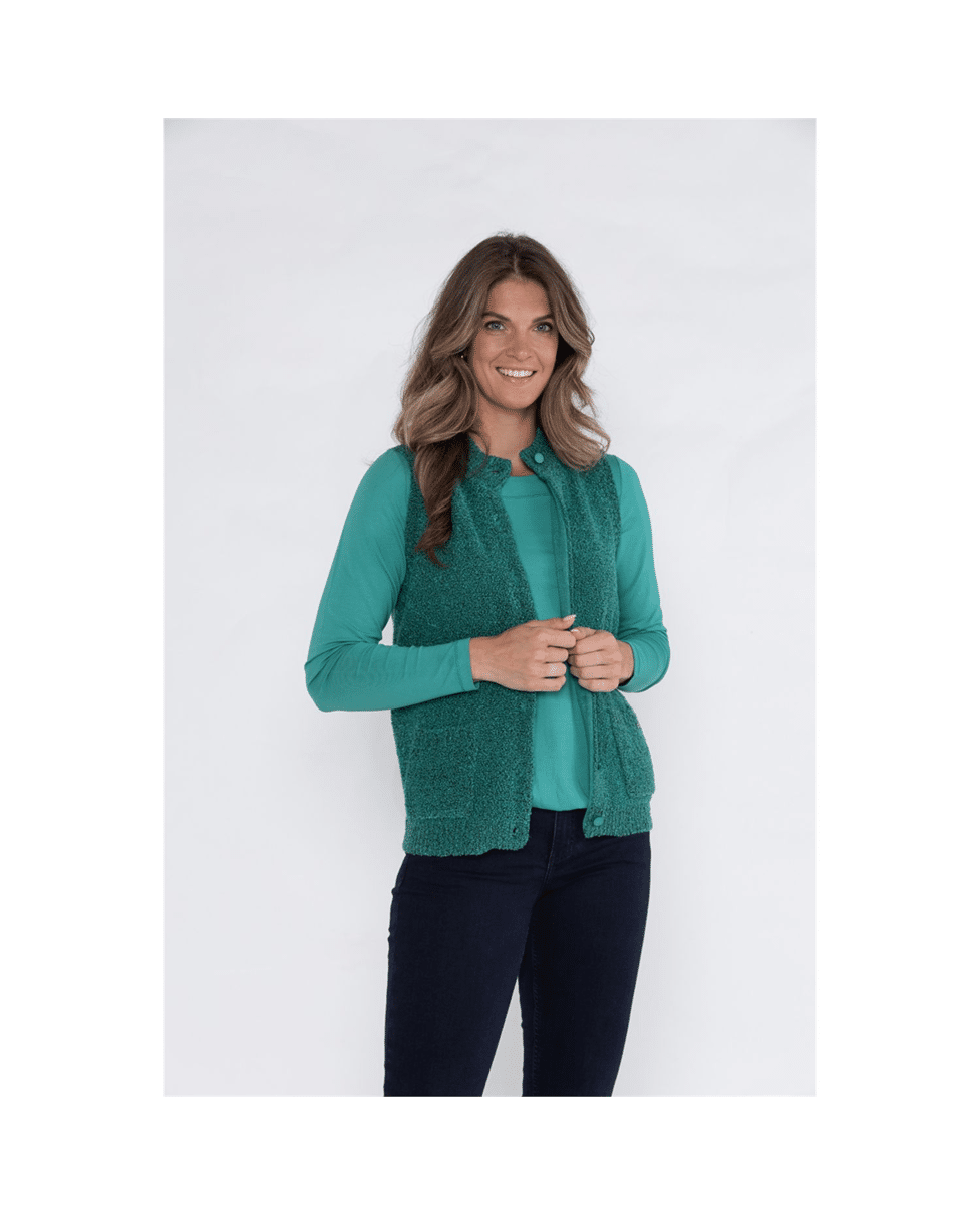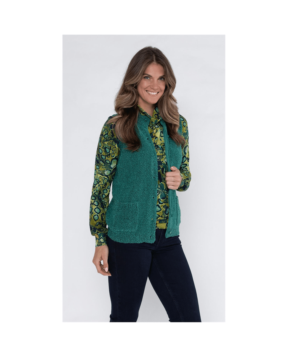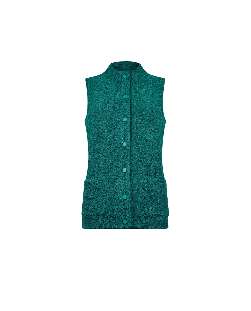 De bouclé structuur geeft dit vest een rijke uitstraling, terwijl het mouwloze model ideaal is voor laagjes in het najaar.