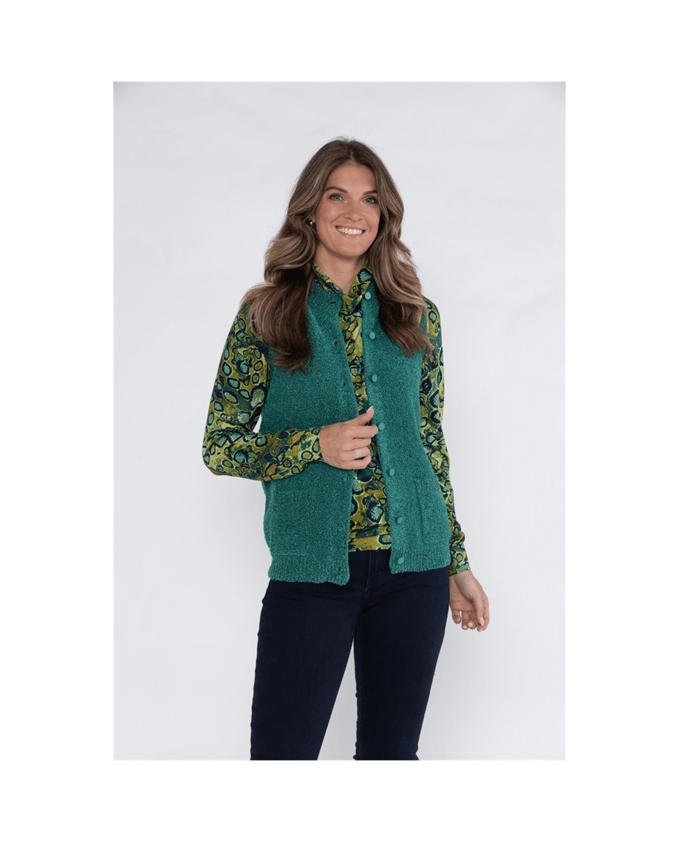Gebreid dames gilet van Roberto Sarto met knoopsluiting en ronde hals