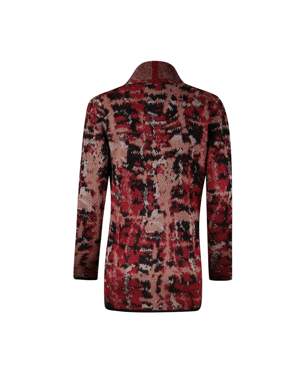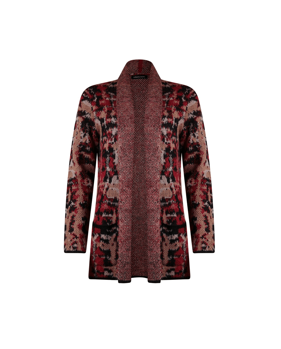 Gebreid damesvest van Roberto Sarto met jacquard patroon, shawlkraag en lange mouwen