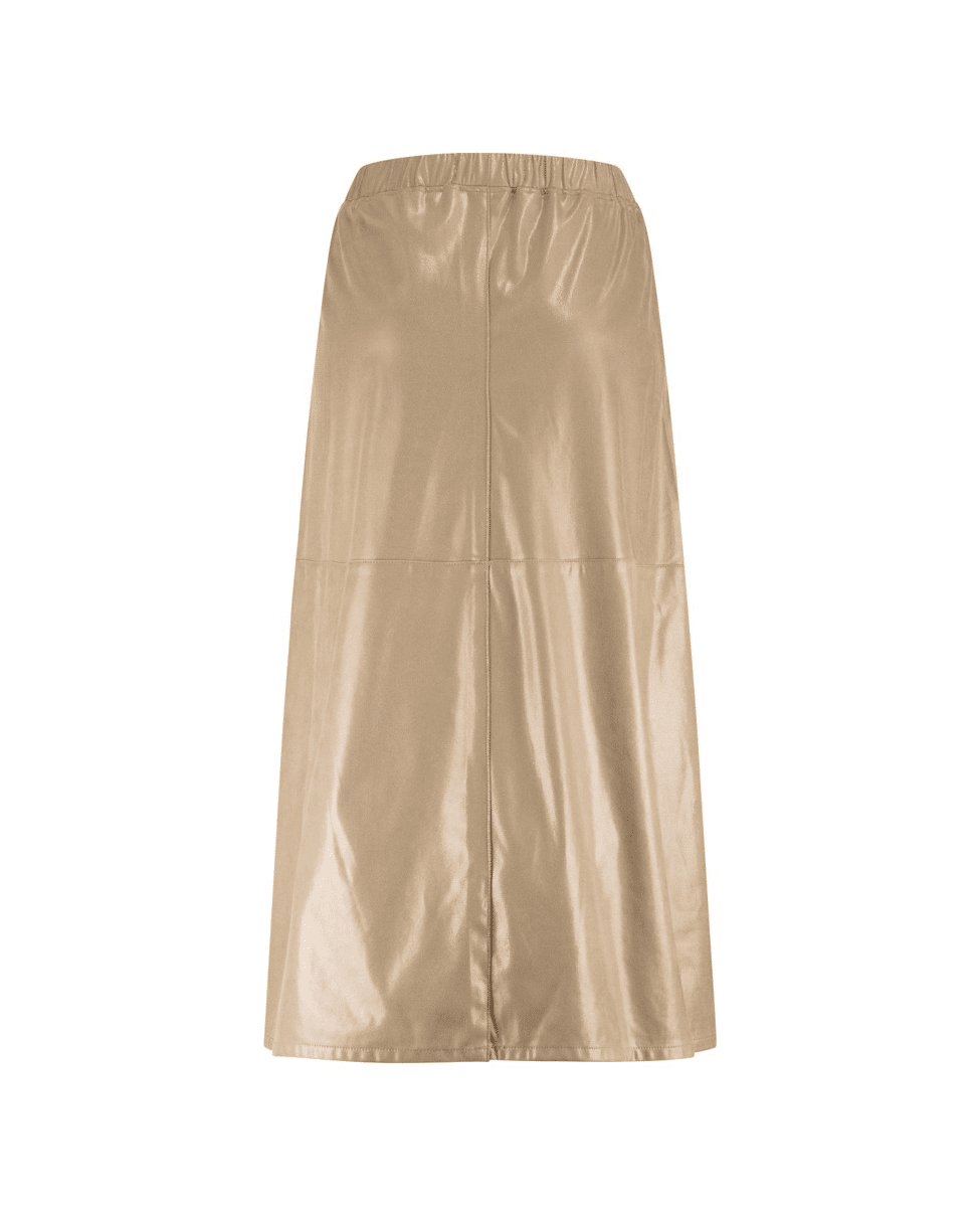 Deze glanzende maxi-rok in zandkleur voegt moeiteloos elegantie toe aan je outfit. Draag ‘m casual met een knit of juist chic met een blouse – van kantoordag tot dinerdate.