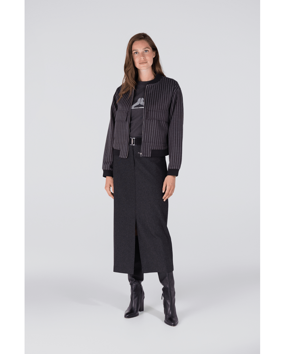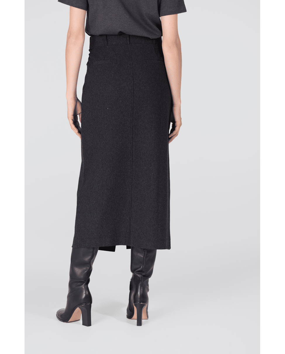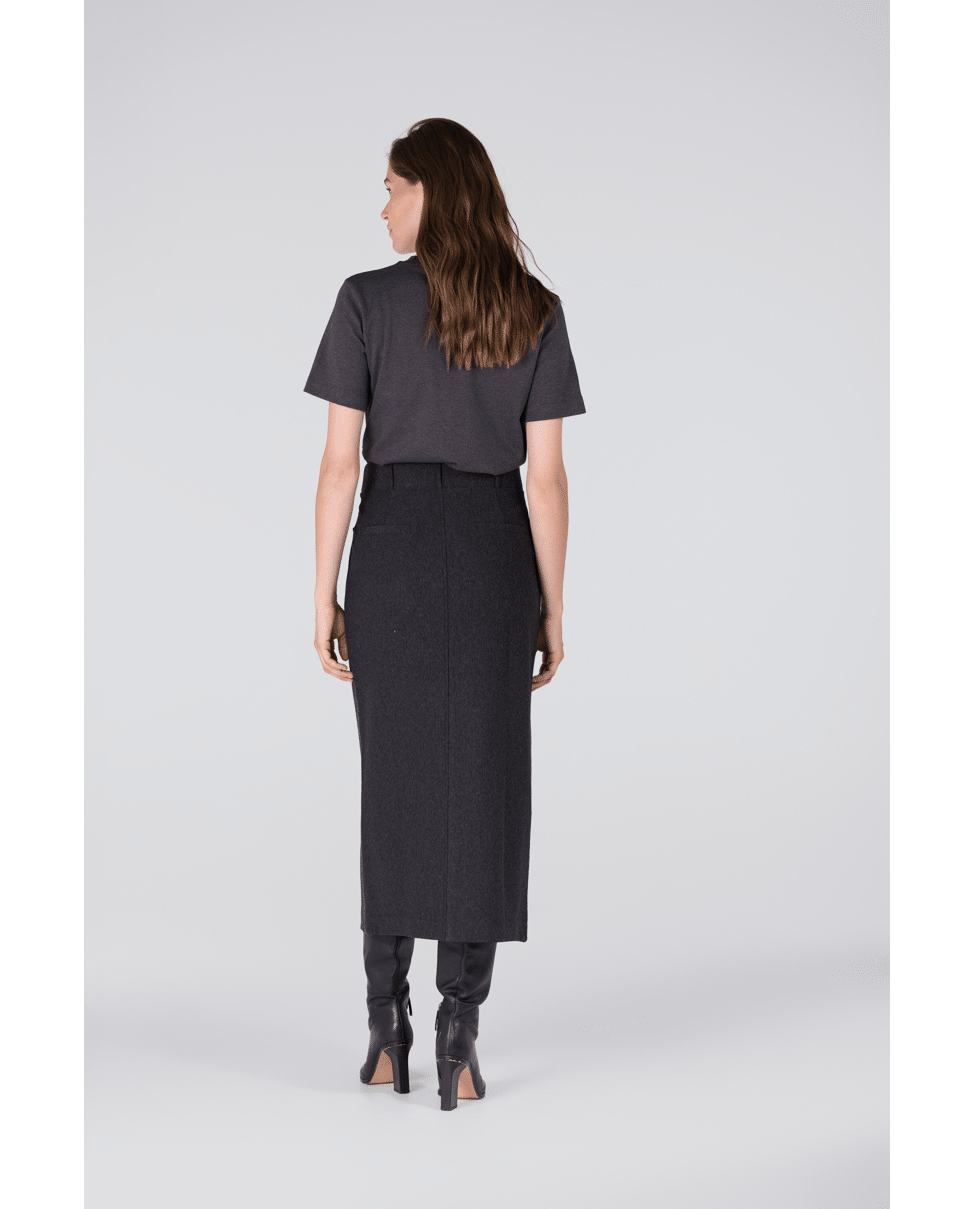 Deze antracietkleurige midi-rok is een veelzijdige keuze voor het najaar. Gemaakt voor vrouwen die houden van een strakke, vrouwelijke look met een moderne twist. Perfect voor werk of een casual diner.