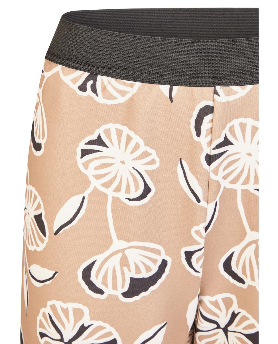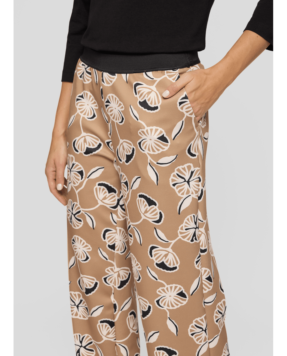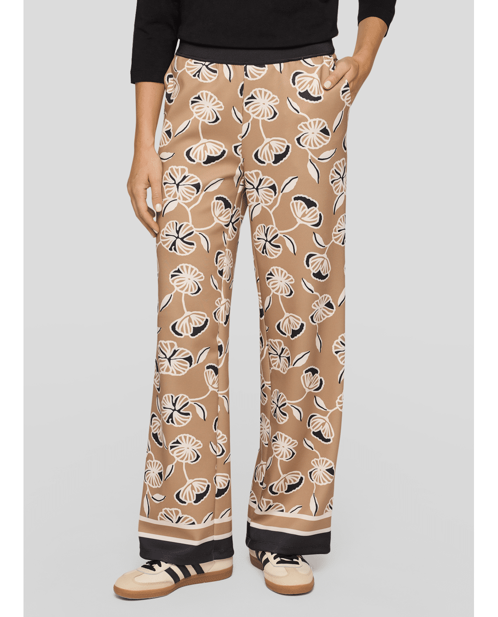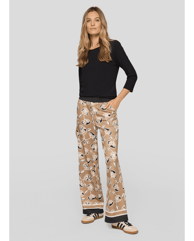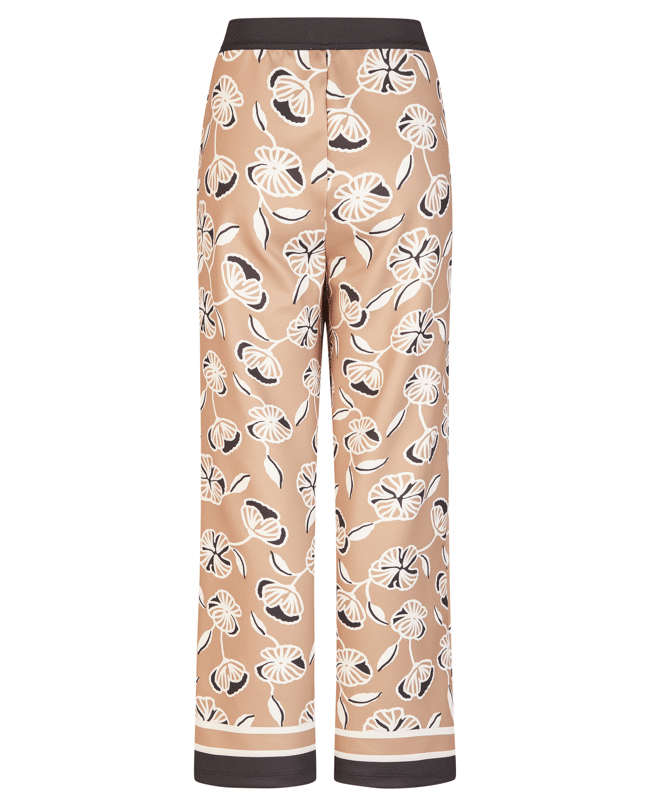 Comfortabele dames instapbroek van Rabe met botanische print, elastische tailleband en rechte wijde pijpen