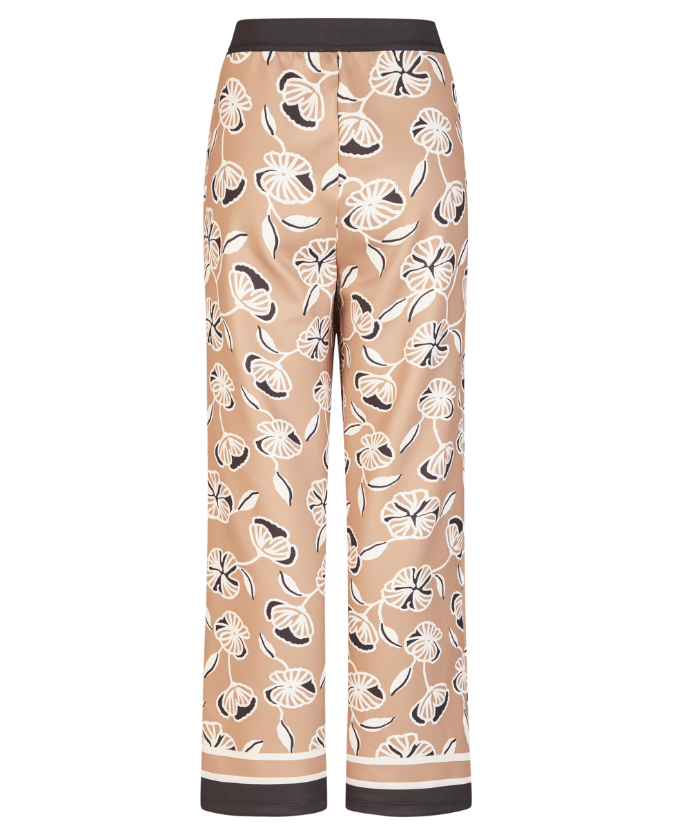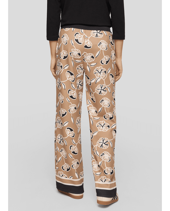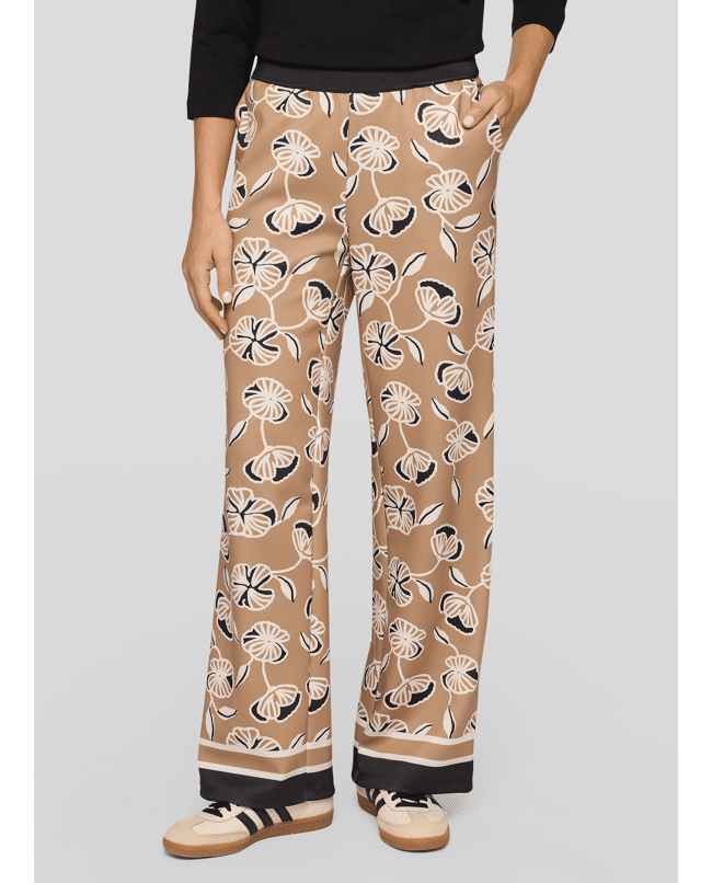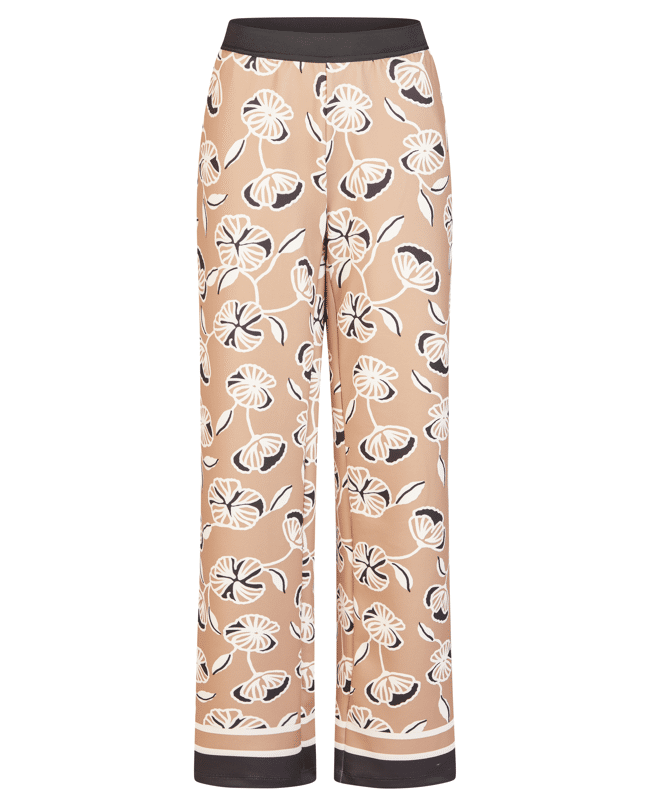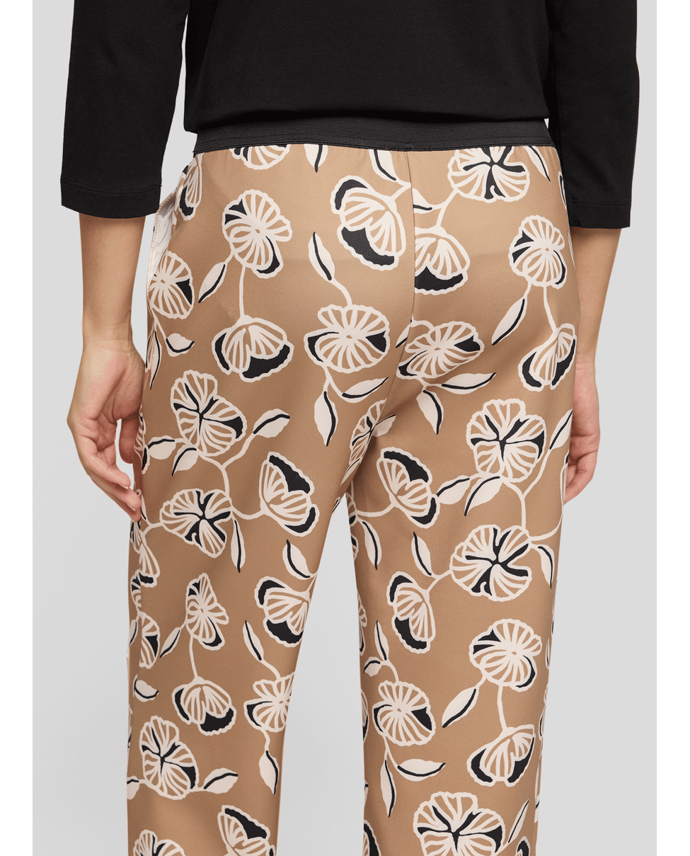 Comfortabele dames instapbroek van Rabe met botanische print, elastische tailleband en rechte wijde pijpen