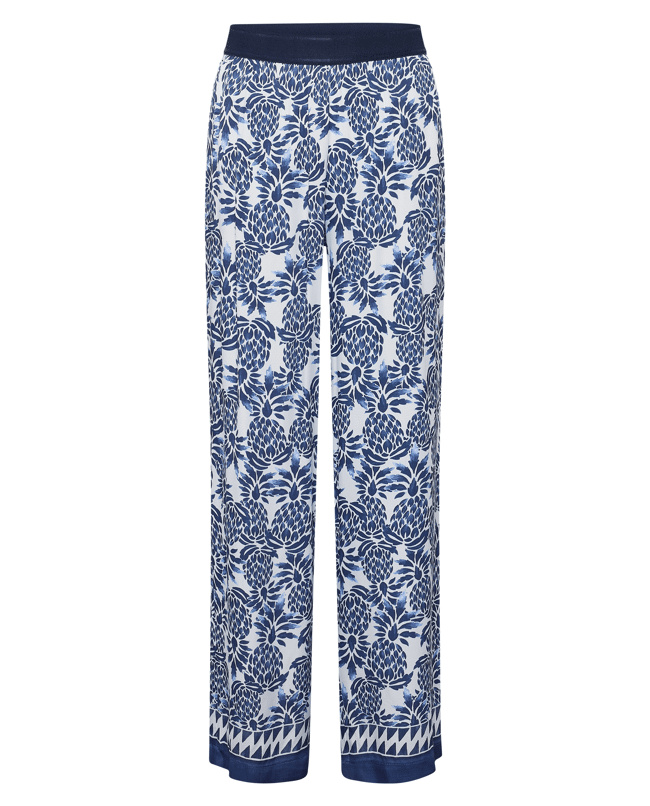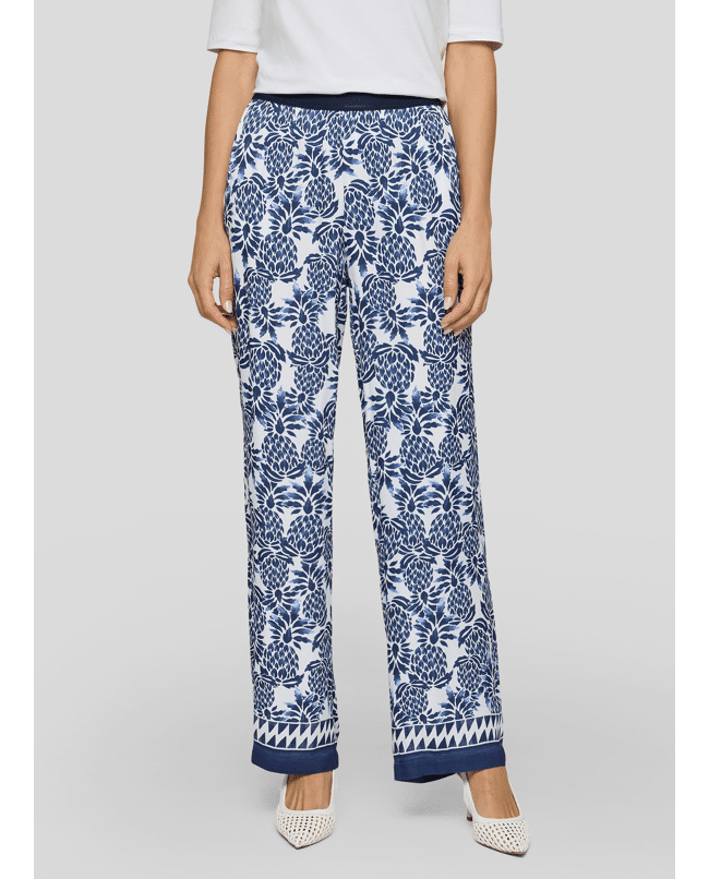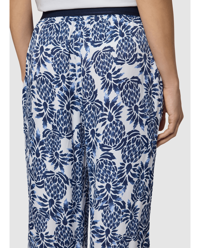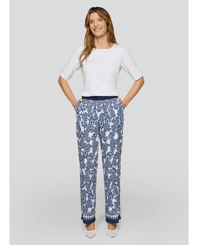 Comfortabele dames instapbroek van Rabe met botanische print, elastische tailleband en rechte pijpen