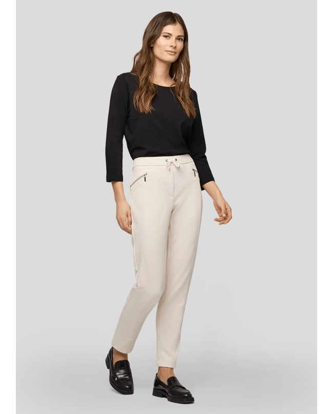Comfortabele dames instapbroek van Rabe met elastische tailleband met trekkoord, rits zakken en rechte pijpen