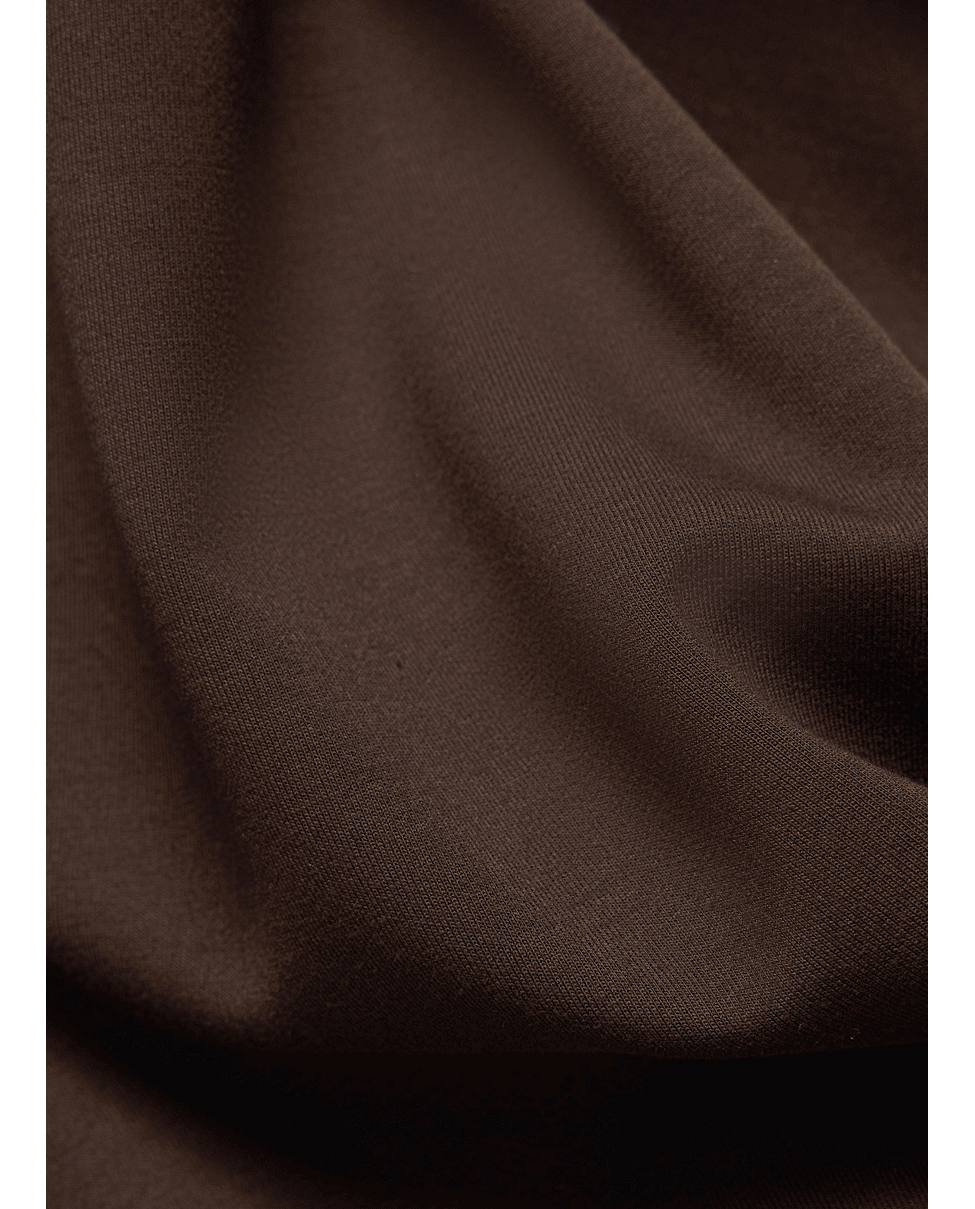 48% polyester, 47% viscose, 5% elastaan – soepel, stevig en licht elastisch.