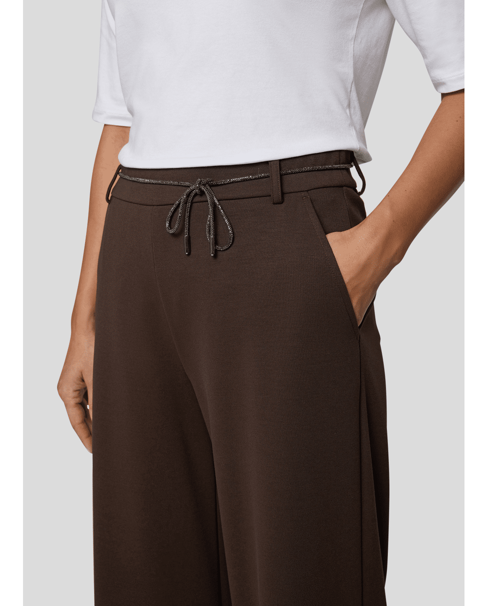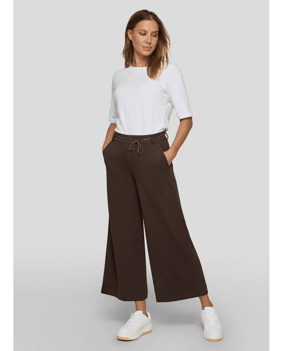 Comfortabele dames instapbroek van Rabe met wijde pijpen en elastische tailleband met strikceintuur