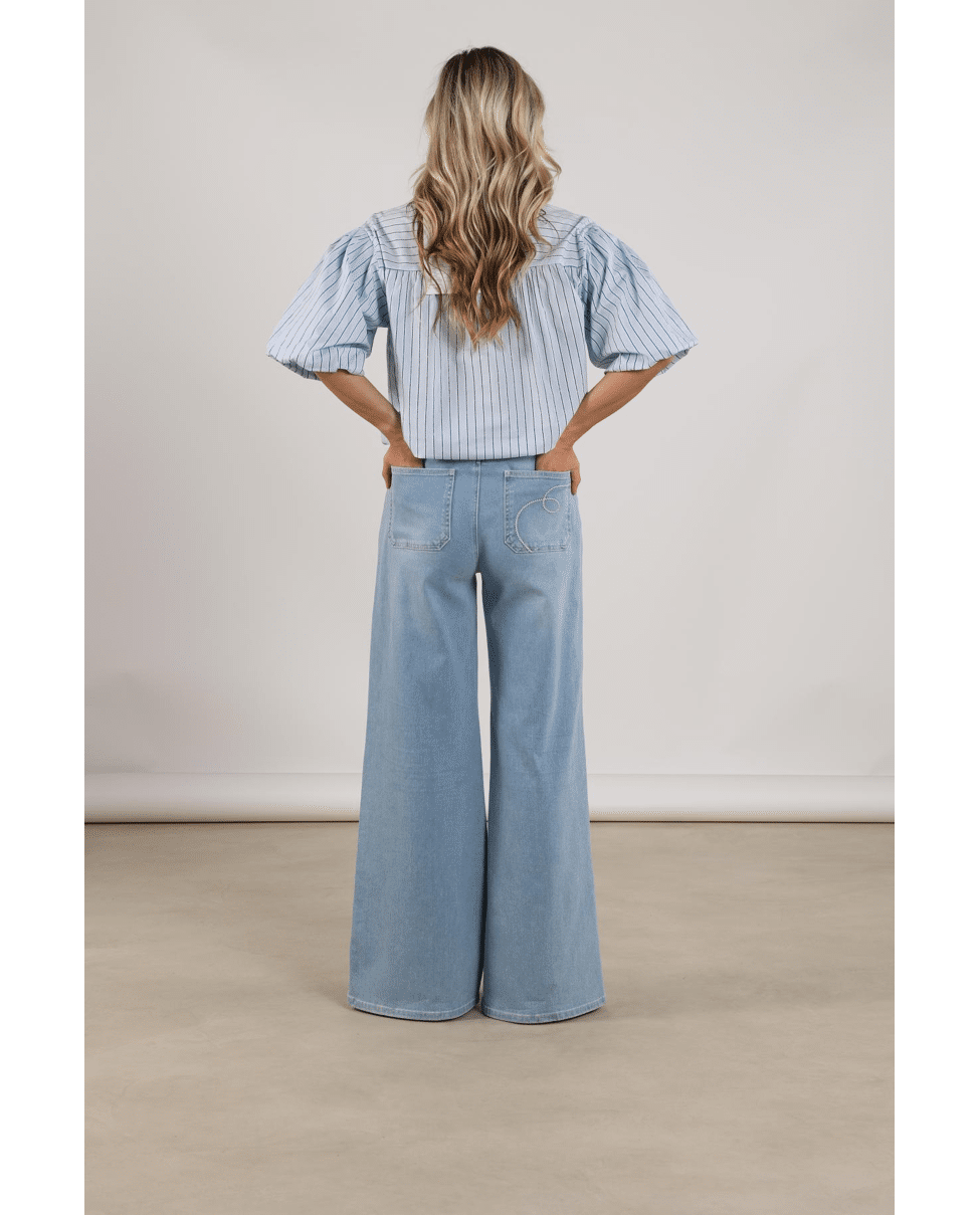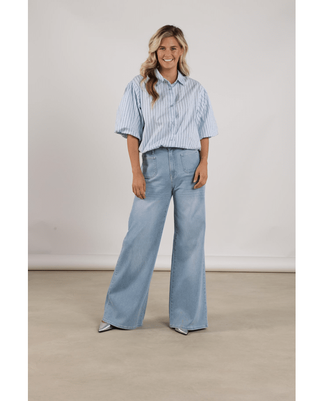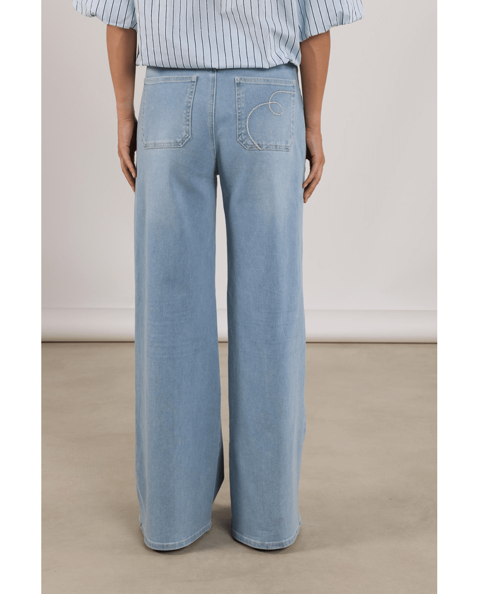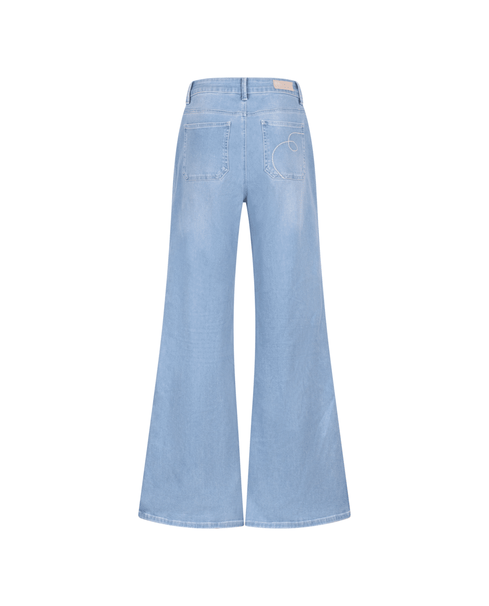 De hoge taille en wijduitlopende pijpen zorgen voor een flatterend silhouet dat moeiteloos te stylen is – van casual tot chic.
