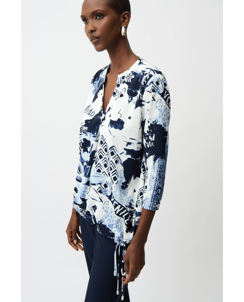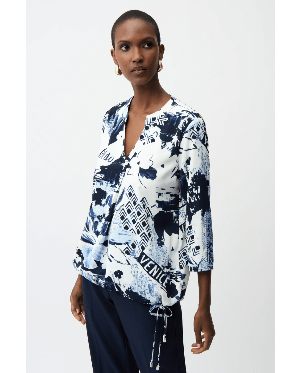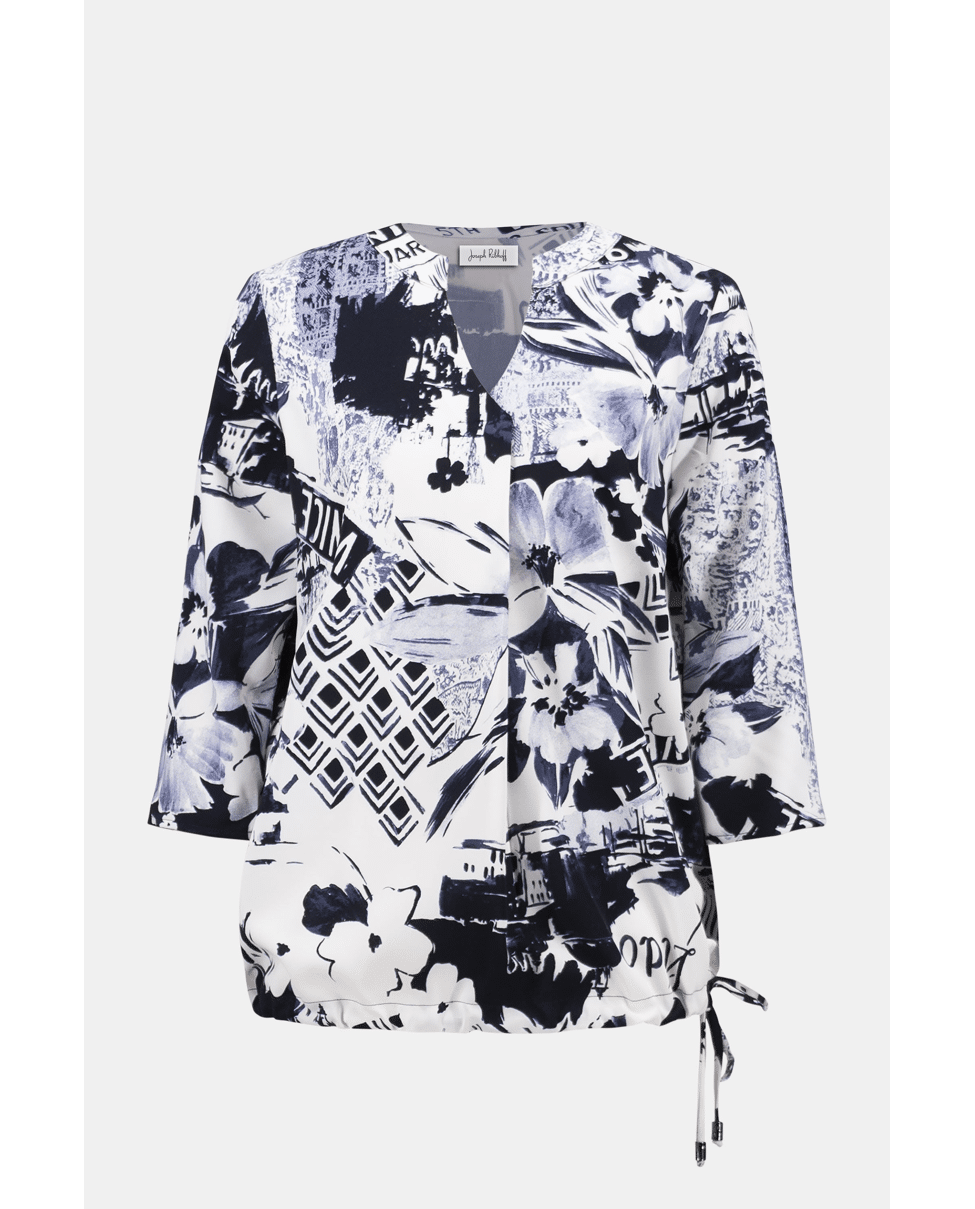 Dames top van Joseph Ribkoff met Italiaanse print, striklint in de zoom, V-hals en 3/4 mouwen