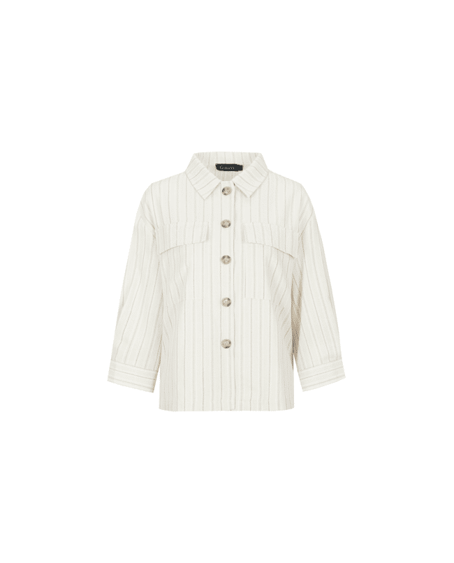De Bellamy blouse is een stijlvolle essential met een moderne, casual uitstraling. Het model heeft een rechte, iets boxy pasvorm met een klassieke kraag en grote opgestikte borstzakken. De knoopsluiti