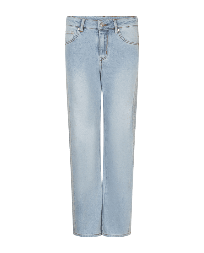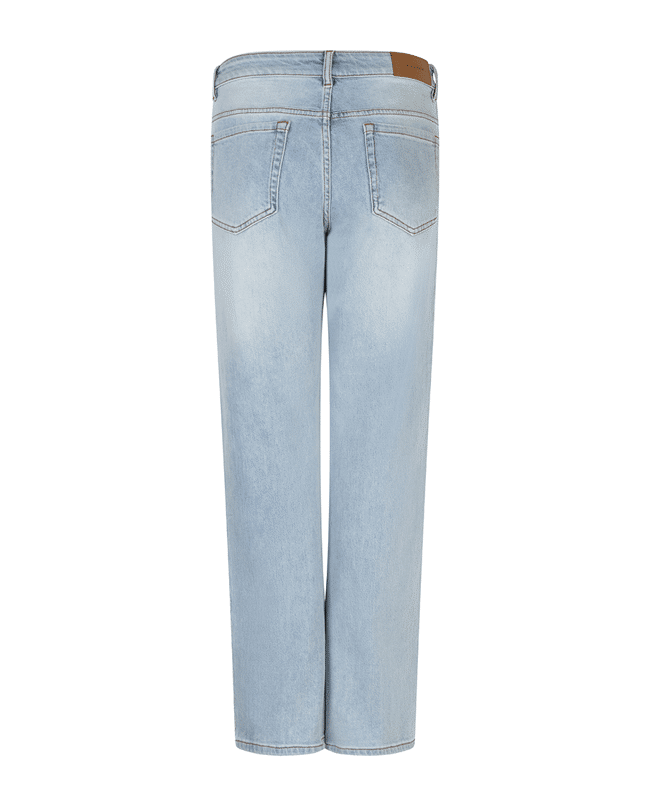De sierlijke embroidery op lichtblauwe denim geeft een zachte twist aan een tijdloze klassieker.