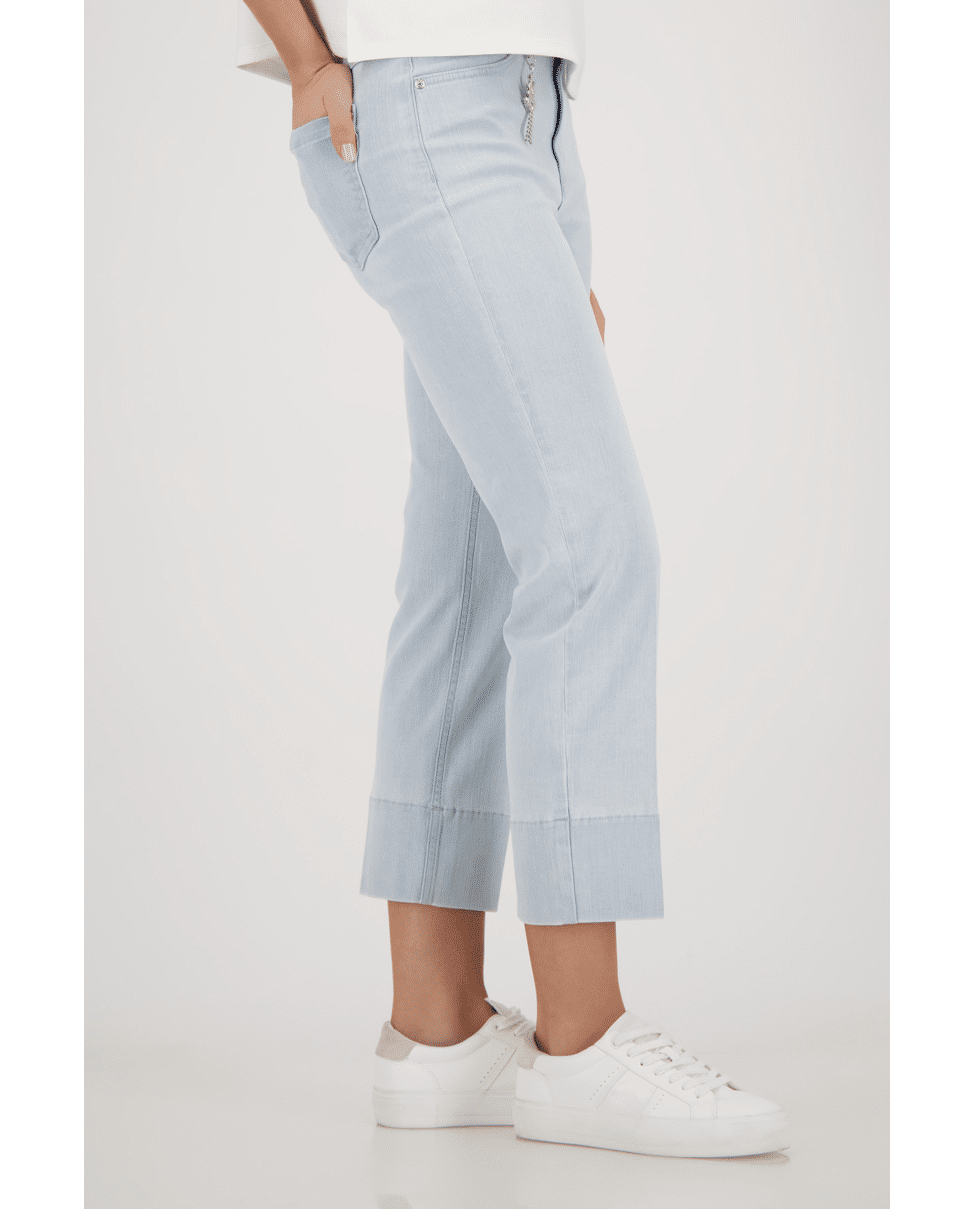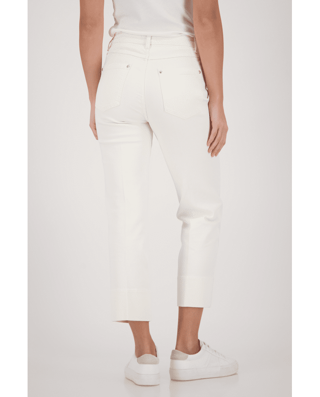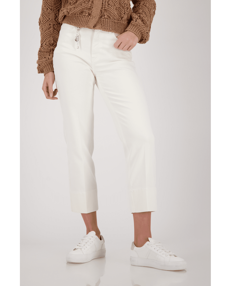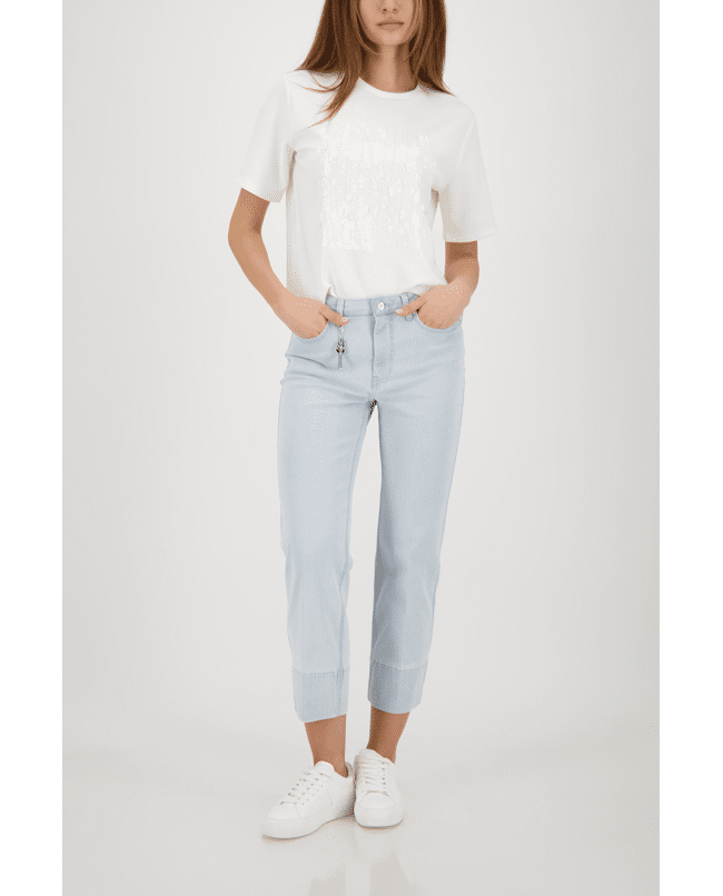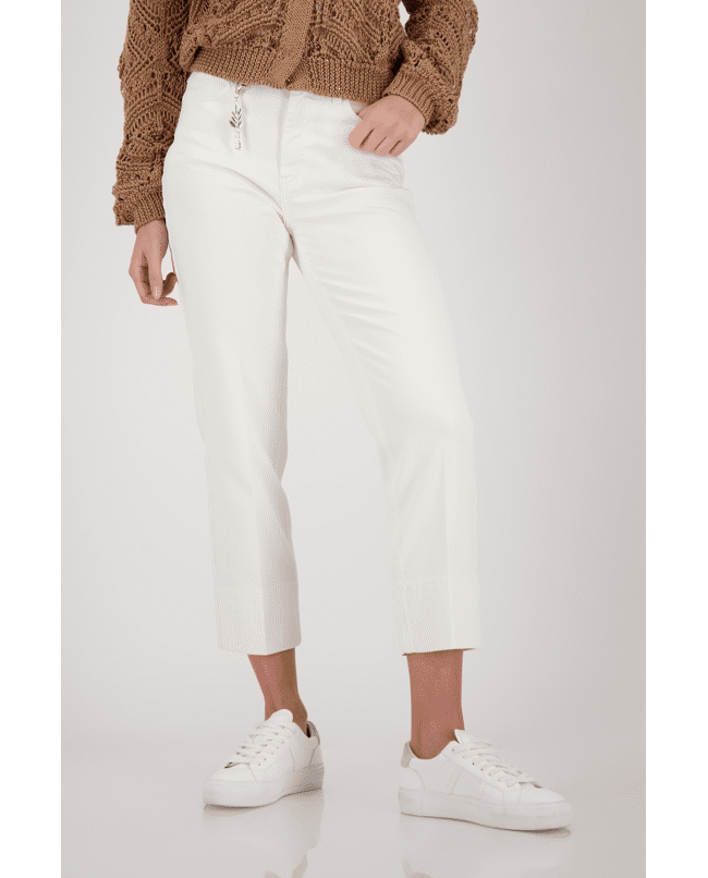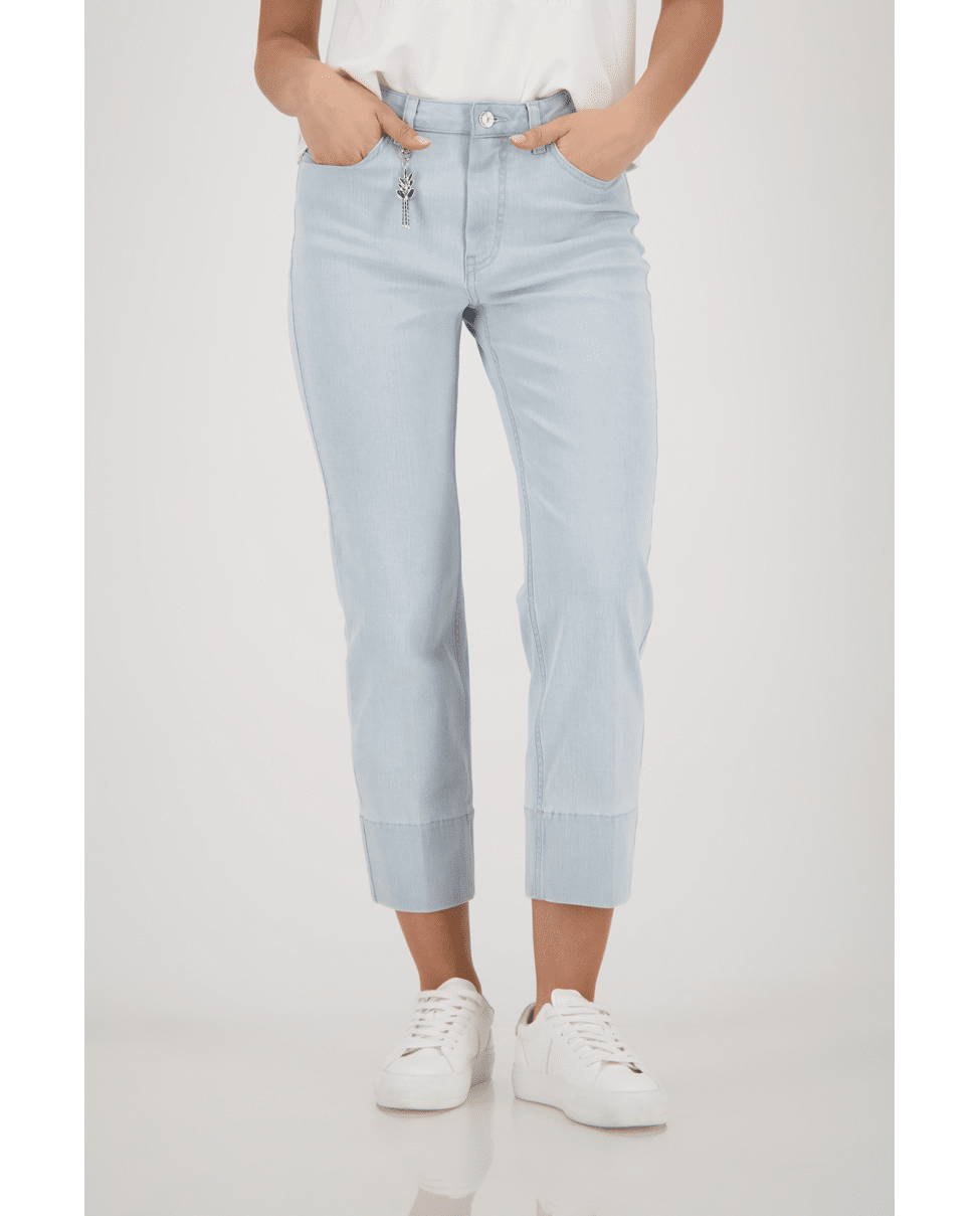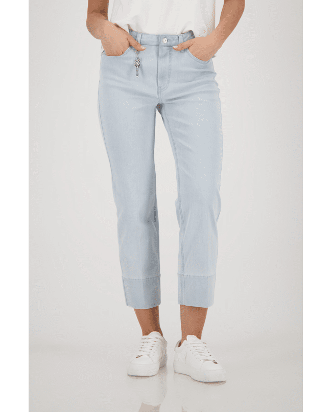 Deze 7/8 jeans van Monari is een frisse toevoeging aan je lente- en zomergarderobe. De hanger aan de riemlus geeft een subtiele knipoog.